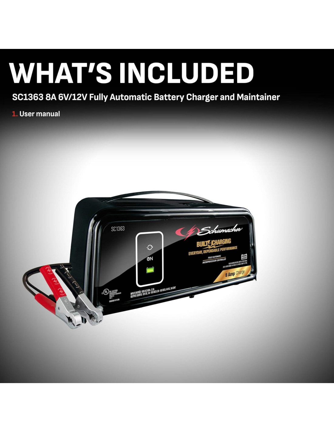 - Modelo: Cargador de Baterías Totalmente Automático Schumacher, Mantenedor y Desulfatador - 8 Amperios/2 Amperios, 6V/12V - Automóviles, Camiones, SUVs, RVs