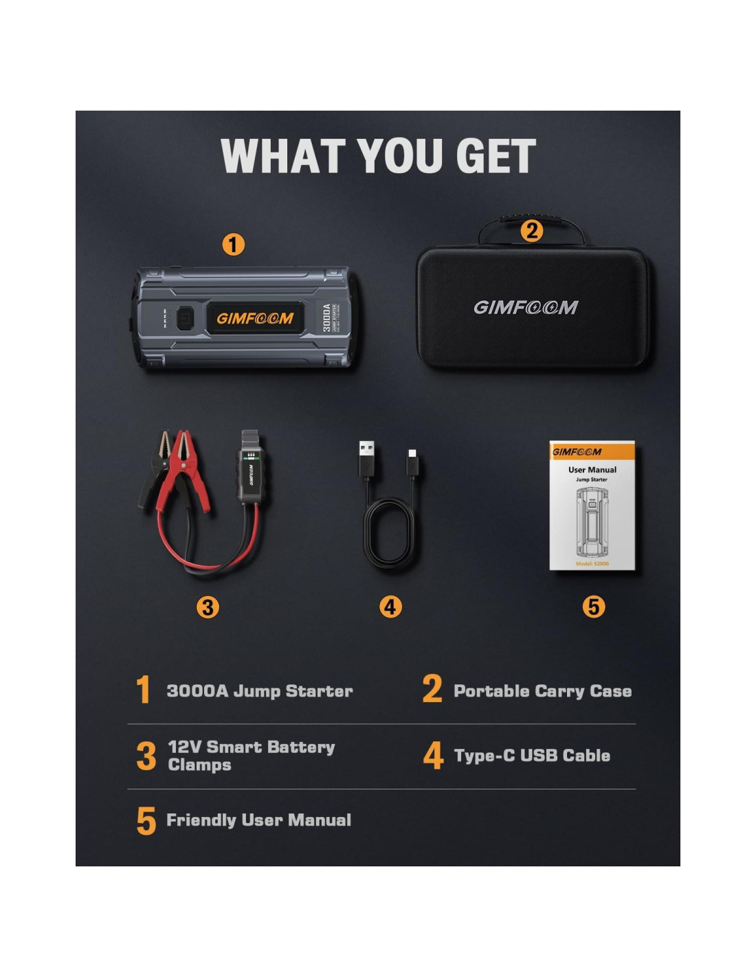 - [LO QUE OBTIENES] paquete de batería de arranque de coche x1, cable de arranque x1, cable de carga x1, estuche de transporte EVA x1, manual del usuario x1 y 2 años de mantenimiento de calidad del producto. Si tienes alguna pregunta sobre el servicio postventa del arrancador portátil de batería de coche, por favor contáctanos.