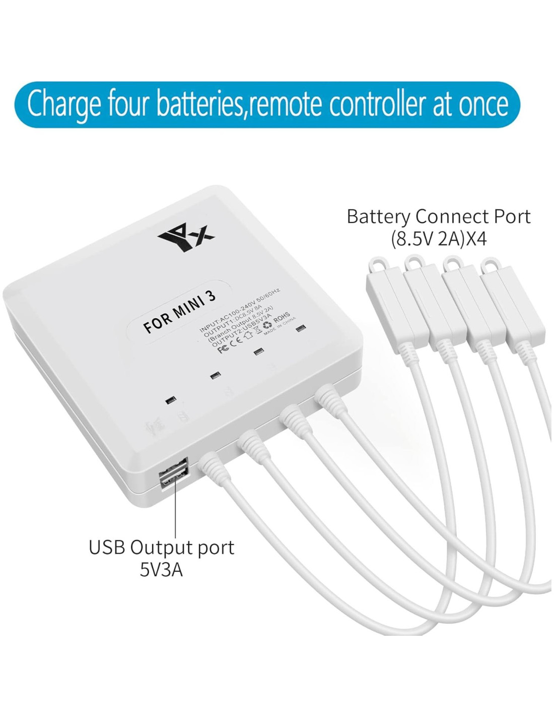 - Lo que obtienes: 1x Cargador 6 en 1 para la serie Mini 3 (Nota: Baterías / control remoto / cable de carga USB / teléfono celular no incluidos)