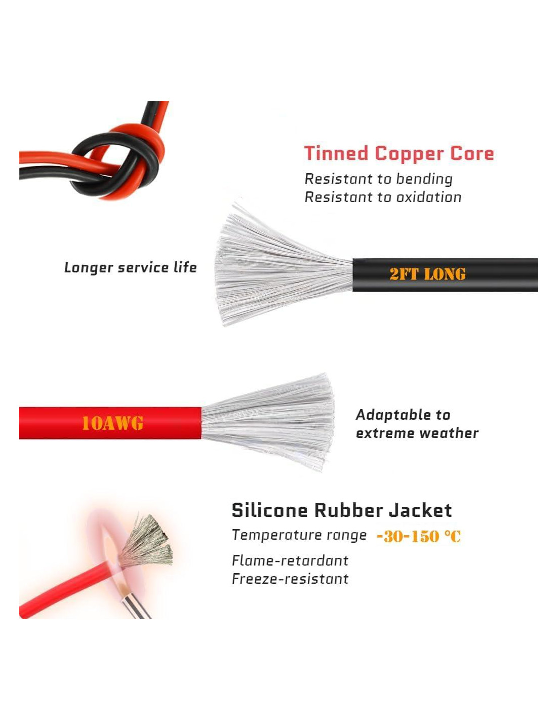 Buena calidad, buen precio, buen servicio. El producto viene con un fusible de 15A (también puedes reemplazar el fusible por uno de 10A, 20A o 30A). Clip de cobre puro, es muy grueso, muy sólido, el resorte también es fuerte, la elasticidad es muy buena. Este es un conector SAE estándar, por lo que no tienes que preocuparte por problemas de compatibilidad, y tiene una tapa, así que puedes cubrirlo cuando no lo estés usando para protegerlo del polvo y el agua. El cable de cobre estañado tiene mejor conductividad eléctrica y durabilidad que el cable de cobre ordinario, y la piel de alta calidad también lo hace flexible y no fácil de corrosión y envejecimiento.