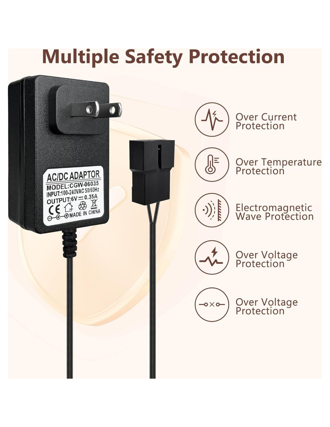 - Tecnología de carga inteligente y segura: Este cargador proporciona un rendimiento seguro y confiable con una salida de 6V DC 0.35A y es compatible con Power Wheels. Con un chip IC inteligente, cambia automáticamente al modo de ahorro una vez que la batería está completamente cargada, protegiendo contra sobrecalentamiento, sobrecorriente, sobrevoltaje y cortocircuitos. Entrada: 100-240V ~ 50/60Hz, longitud del cable: 6.6 pies (2 m)