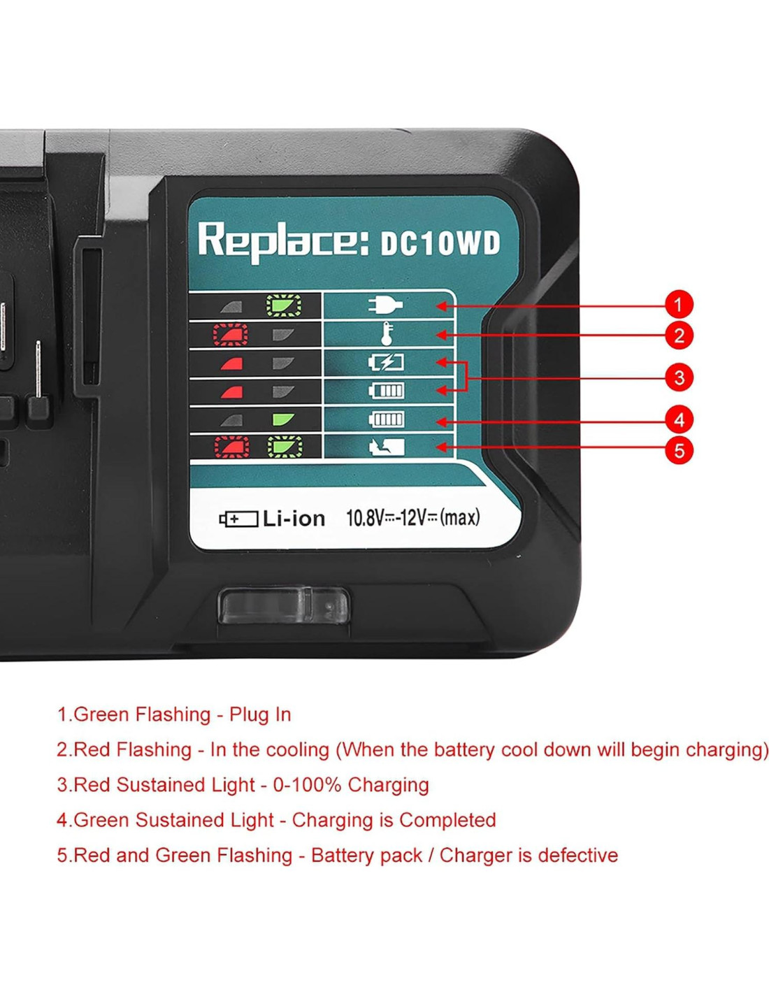 - Cargador Universal: Cargador universal especialmente diseñado para Makita. Este cargador de batería de reemplazo es adecuado para baterías de iones de litio Makita de 10.8V a 12V.