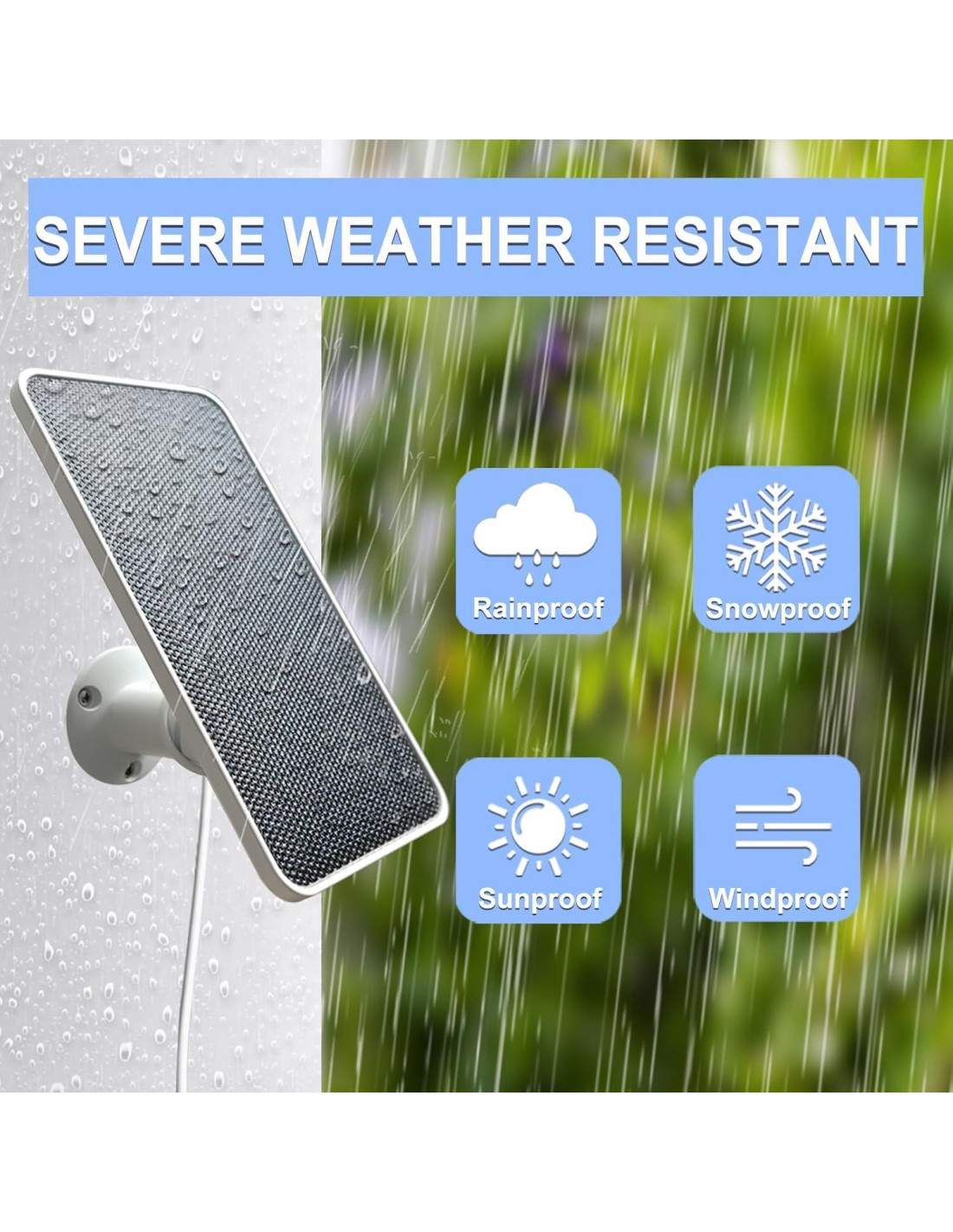 - Carga Eficiente: Fabricado con silicio monocristalino y etileno-tetra-fluoro-etileno delgado y ligero, nuestro panel solar supera a otros en un 13% en eficiencia de conversión y salida de energía. Asegura carga continua para su cámara de seguridad Arlo durante días soleados y parcialmente nublados.