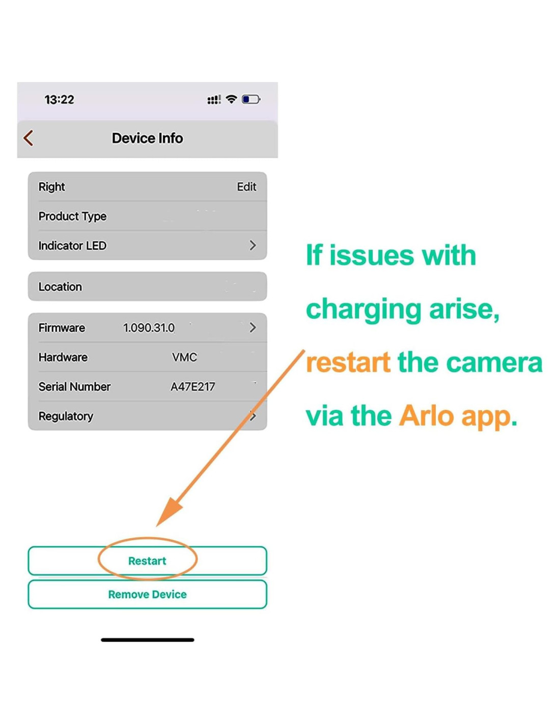 - Servicio al Cliente: Verifique el estado de carga utilizando la configuración de 'Batería' de la aplicación Arlo. Si tiene preguntas, contáctenos para una respuesta oportuna.