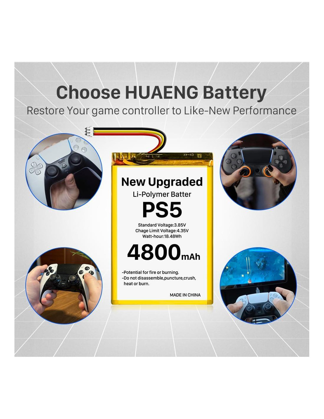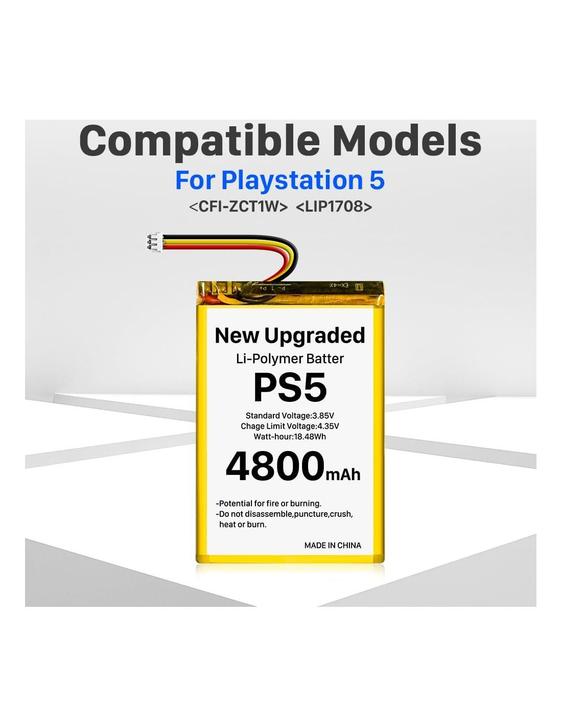 - [Diseño de Larga Duración] Esta batería de reemplazo ps5 mejorada tiene una capacidad de 4800mAh, material Li-ion, Voltaje de 3.7V, Watt-hora: 10.36Wh, Devuelve la vida útil de la batería de tu Controlador Dualsense de Sony Playstation 5 a la gloria.