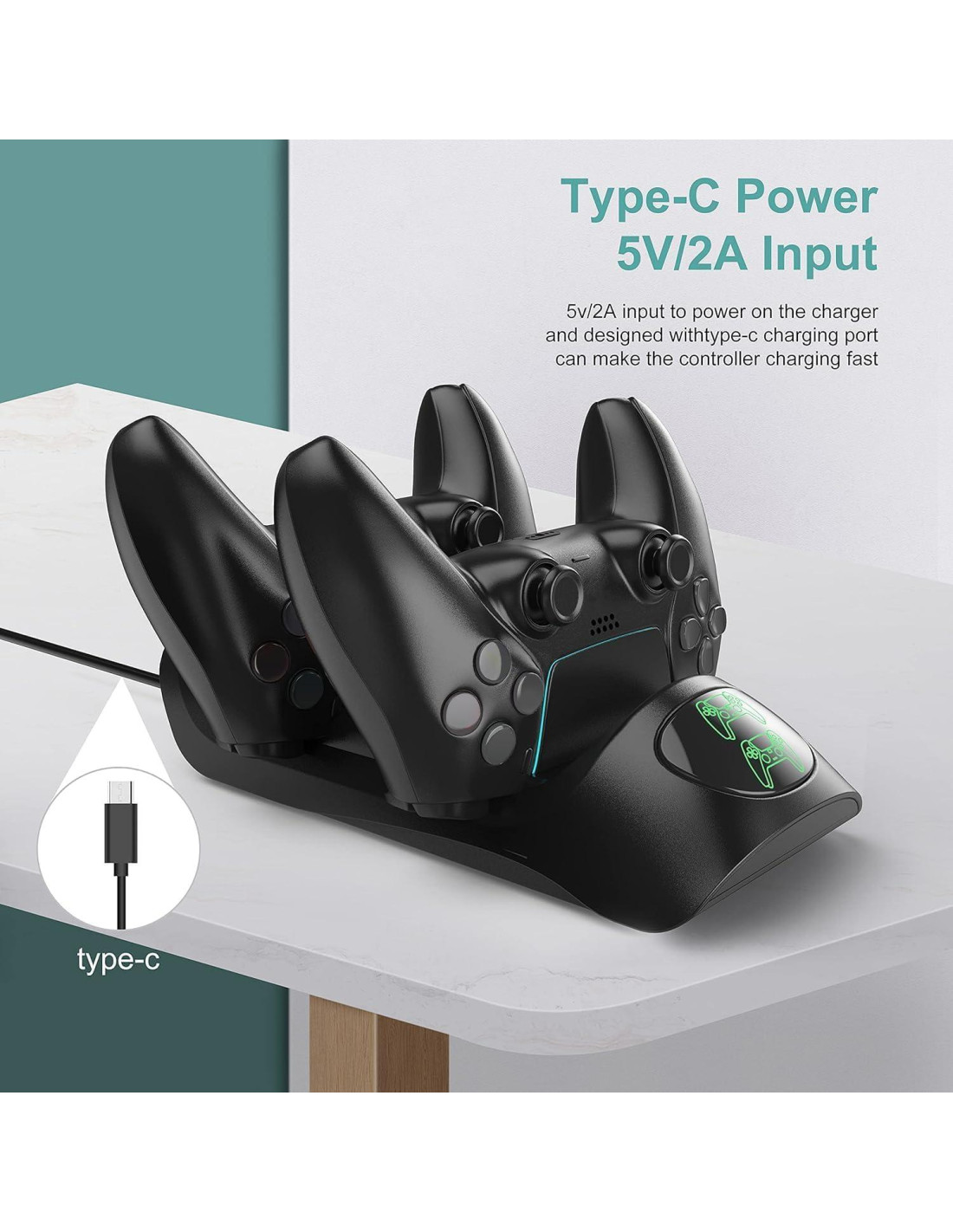 - Fácil de usar. La base de carga para dos controladores está especialmente diseñada para el controlador de PS5, puedes cargar rápidamente dos controladores en 2.5 horas, simplemente coloca el controlador en la estación de carga dual de PS5 para comenzar a cargar.