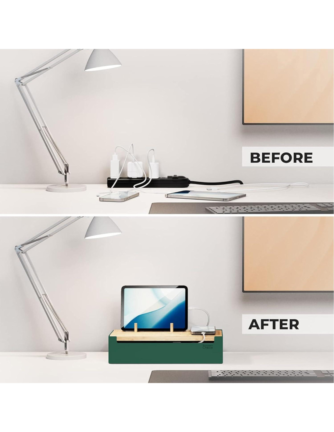 - ESTANTE ORGANIZADOR TODO EN UNO: una solución versátil diseñada para acomodar discretamente regletas de enchufes o protectores contra sobretensiones, mientras transforma zonas de carga desordenadas en estaciones de carga elegantes. Un regalo perfecto para la familia durante la temporada festiva.