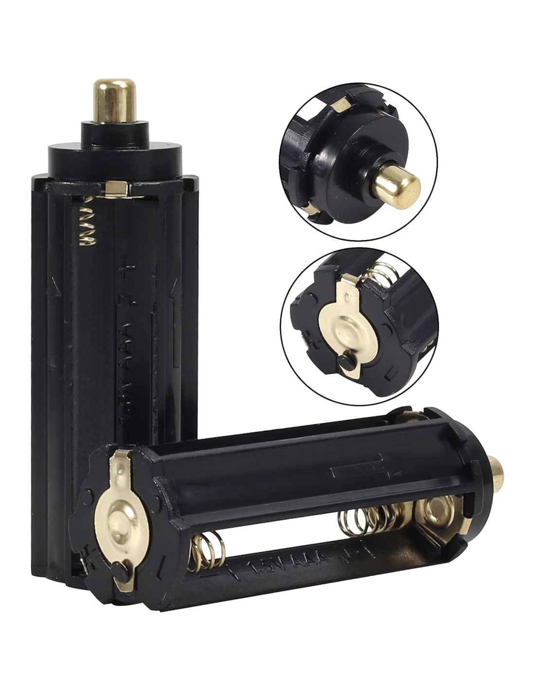 - Adaptador de Soporte de Batería AAA: Caja de Almacenamiento Cilíndrica Negra para 3 x 1.5V Baterías AAA para Linterna 18650.
