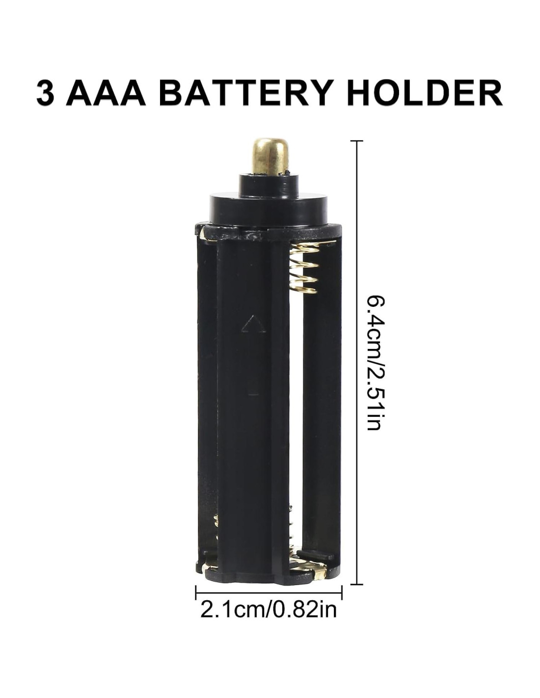 - Tamaño de la Caja de Soporte de 3 Baterías AAA: Aproximadamente 64 x 21mm / 2.5" x 0.82" (L*D).(La columna de metal en el positivo puede rebotar para ajustarse mejor al dispositivo).