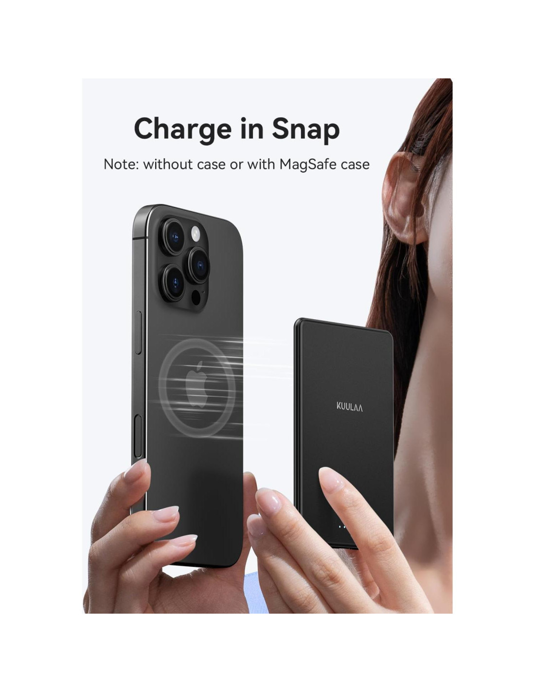 - Carga Portátil Mag Safe: ¡La función de carga magnética del paquete de batería de Apple es muy conveniente! ¡No necesitas enchufar un cable para cargar tu teléfono! Simplemente adjunta el power bank a tu teléfono y comenzará a cargar automáticamente. Cuerpo delgado y se adhiere firmemente, lo que te permite cargar sin esfuerzo tu iPhone 16/15/14/13/12 mientras tomas selfies o usas tu teléfono manos libres. (Nota: La función de carga magnética es SOLO compatible con la serie iPhone 16/15/14/13/12 y fundas magnéticas.)