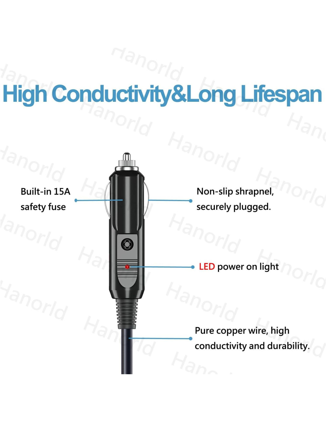 - Hecho de cable de alimentación de cobre puro