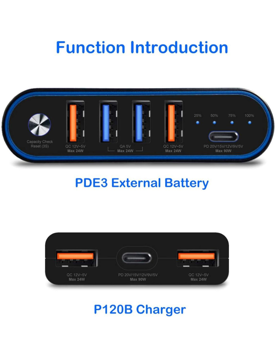 - Paquete: 1x BatPower 98Wh/26800mAh Banco de Energía USB-C para Laptop, 1x Cargador PD USB-C Slim de 120W, 1x Cable AC, 1x Cable PD USB-C, 1x Cable USB A a C y Manual.