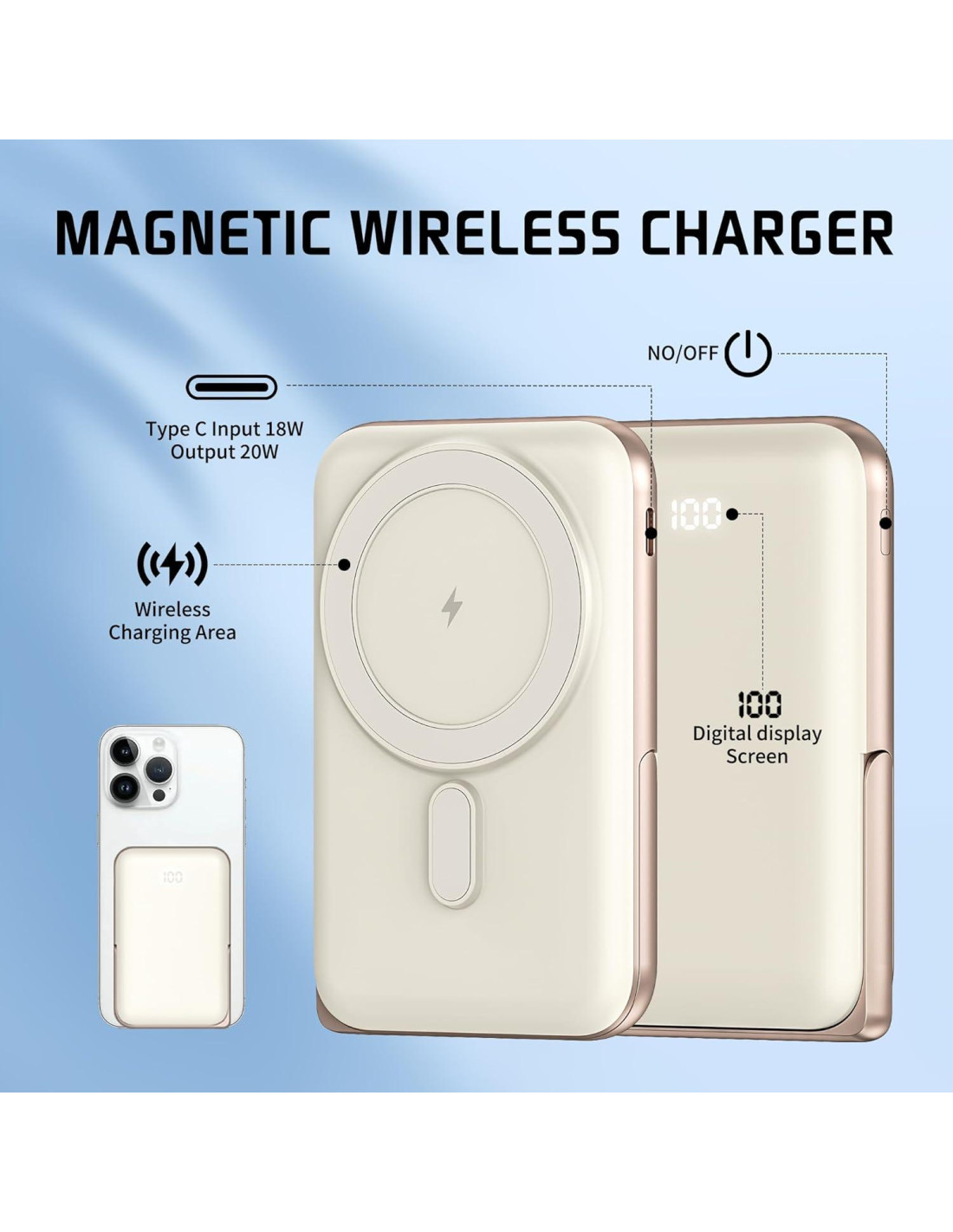 - [Carga Inalámbrica Magnética] Con una potencia de salida de 15W, capacidad de 10,000mAh. Esta carga inalámbrica magnética es perfecta para viajeros, aventureros y viajeros diarios, manteniendo tus dispositivos cargados y listos para la acción, minimizando cables desordenados