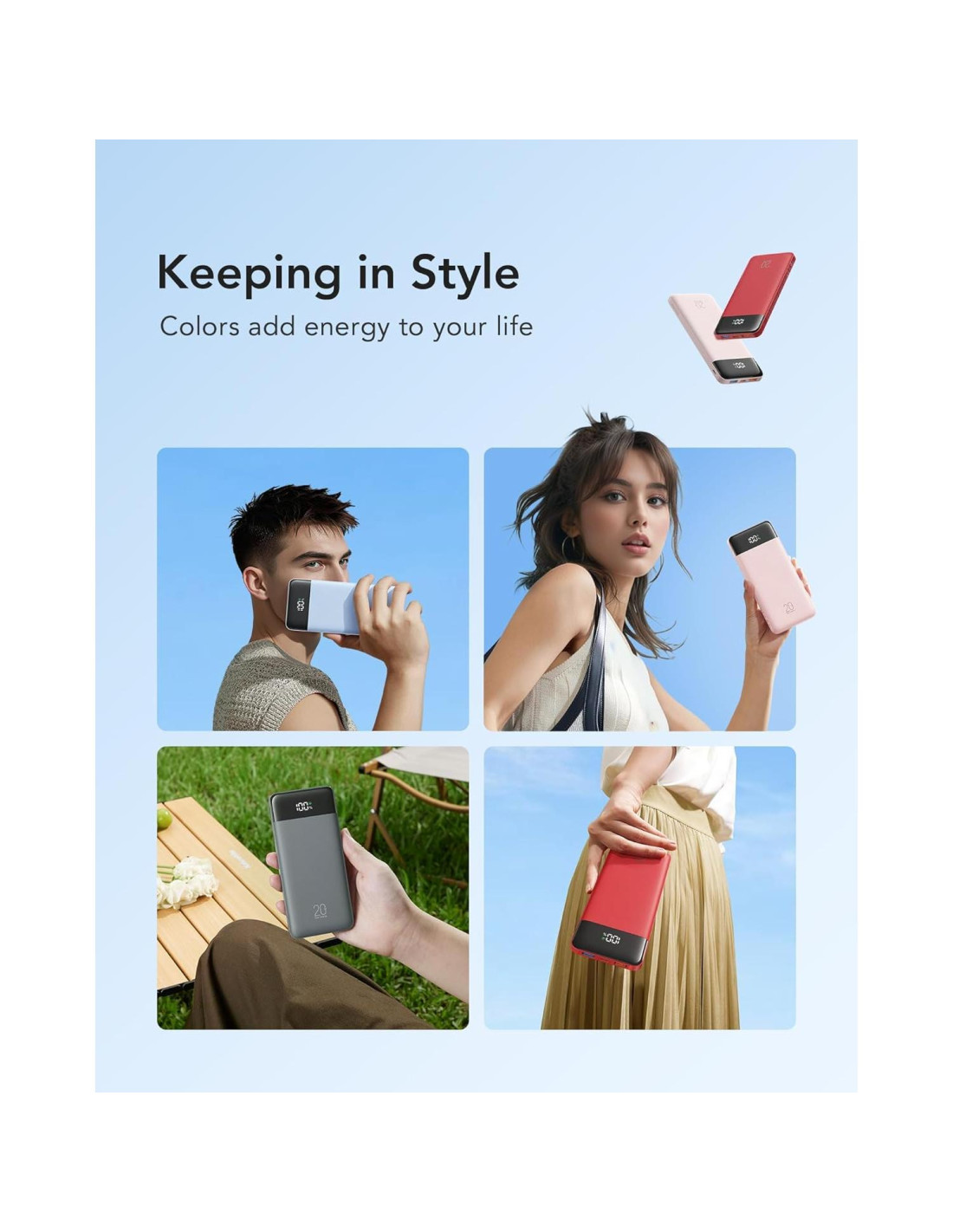 - [Compatibilidad Universal y Capacidad Suficiente] La Batería Externa es ampliamente compatible con teléfonos y tabletas de todas las marcas. La capacidad de 20000mAh es suficiente para alimentar dispositivos durante varios días. Carga el iPhone 14 aproximadamente 3.8 veces, el Samsung Galaxy S23 Ultra 2.5 veces, el Google Pixel 7 aproximadamente 2.7 veces. Su alta capacidad y tecnología de carga eficiente proporcionan una experiencia de carga confiable y rápida. Di adiós a la inconveniencia de quedarte sin batería y abraza esta poderosa batería externa de 20000.