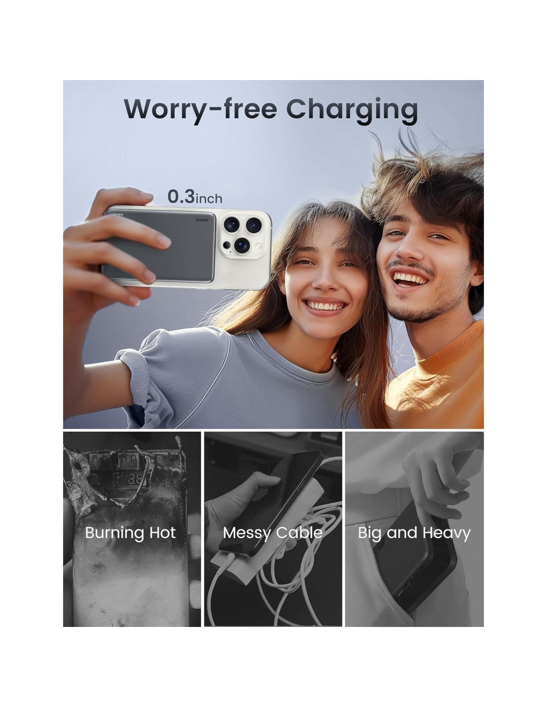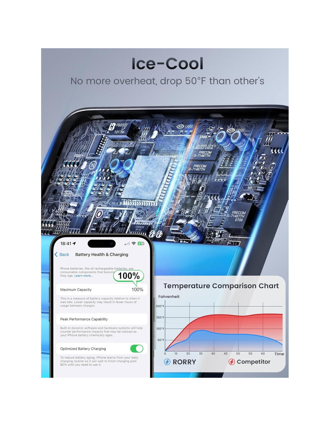 - [Frío como Hielo y Protección] ¡Soporta caídas de 50F (10C) más que otros! Equipado con un sistema de control de temperatura líder en la industria, este paquete de batería para magsafe no se sobrecalentará como otros. Siempre cerca de la temperatura corporal, no sentirás incomodidad incluso después de largos períodos de uso en verano caluroso. Protege efectivamente la batería de tu dispositivo y este banco de energía para un uso a largo plazo