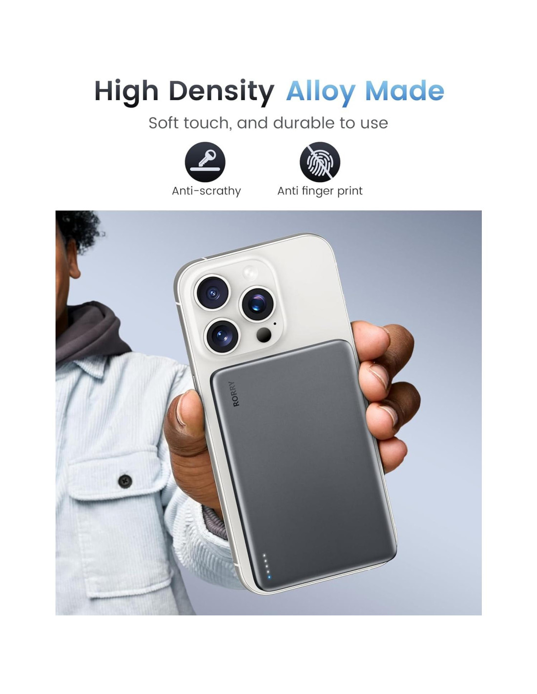 - [Duradero Hecho de Aleación] Recubierto con robusto aluminio, este cargador portátil delgado para iPhone es anti-huellas y anti-rayones, fácil de limpiar y también duradero para un uso a largo plazo