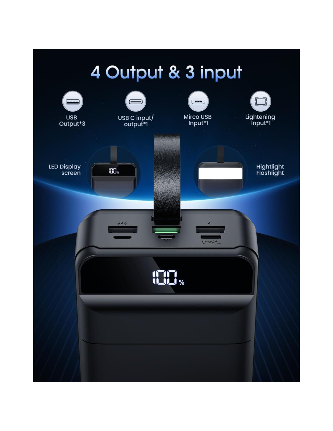 - Gran Capacidad 60000mAh Power Bank: El cargador portátil de ultra alta capacidad mantendrá tu teléfono y otros dispositivos funcionando durante muchos días. Ideal para viajar, acampar y hacer senderismo con batería de teléfono completa