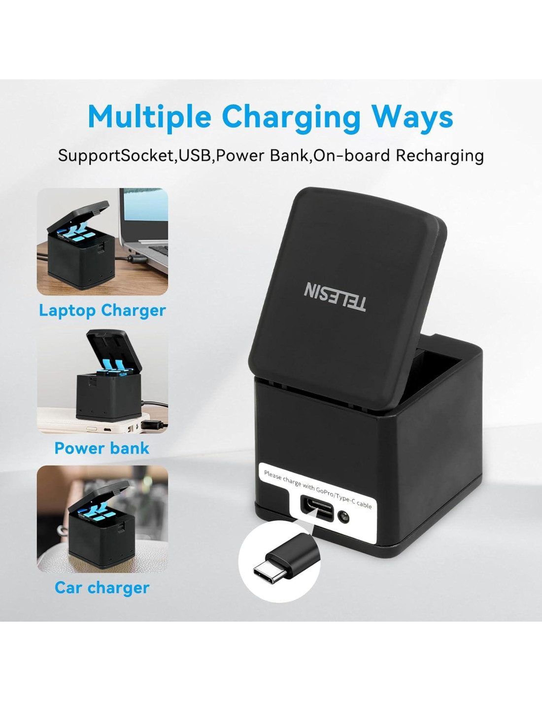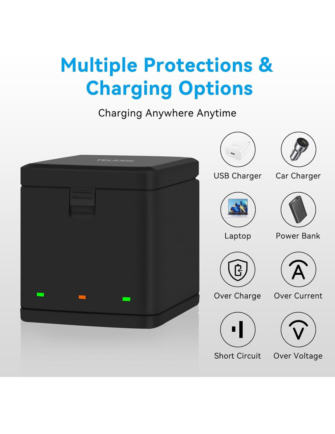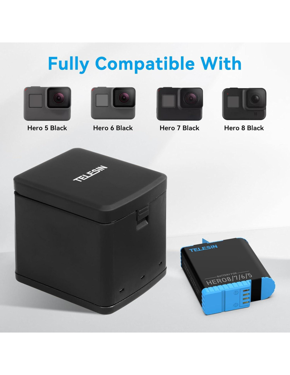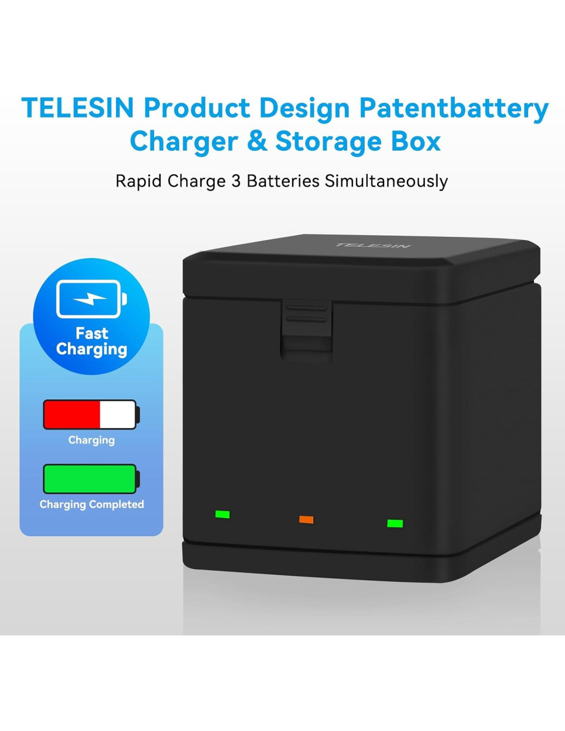 - La caja de carga contiene 3 celdas de batería separadas, permite cargar 3 baterías Hero 8/7/6/5 al mismo tiempo, puede usarse como cargador de batería y como caja de almacenamiento de baterías cargadas.