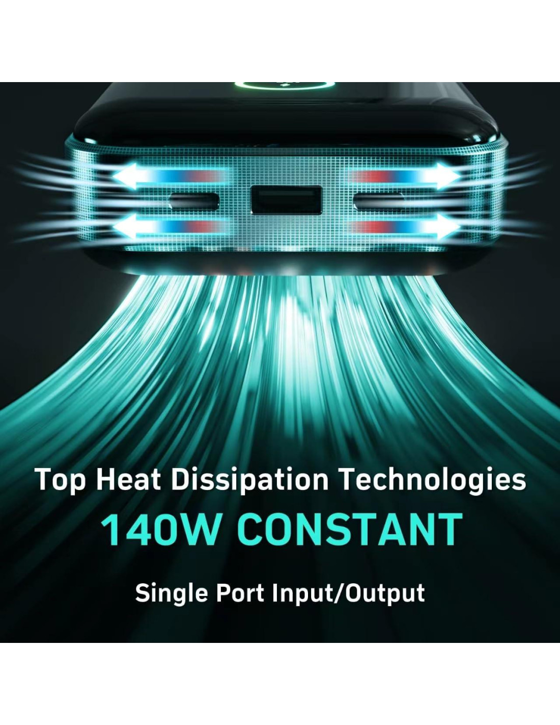 - 4-en-1 Salida Total de 250W: Equipado con dos puertos USB-C bidireccionales, un puerto USB-A y un cargador inalámbrico magnético, el banco de energía entrega hasta 250W impulsado por la tecnología PD 3.1. Aumenta tu MacBook Air (M2) al 50% en solo 28 minutos. Con la mejor tecnología de disipación de calor, mantiene una salida constante de 140W por puerto sin sobrecalentarse.