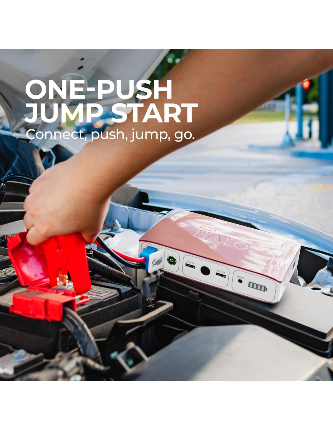 Cargador Portátil HALO Bolt Un potente cargador portátil, el cargador HALO Bolt proporciona energía cuando más la necesitas, no solo para tu teléfono, tableta y otros dispositivos portátiles, sino también para tu coche. Con solo presionar un botón, este cargador portátil, compacto y refinado, puede arrancar un coche, barco o cortacésped con los cables de arranque incluidos. Una vez que estés en la carretera, las dos salidas USB del HALO Bolt te permiten cargar múltiples dispositivos a la vez, por lo que puedes cargar tu smartphone mientras tus hijos se mantienen ocupados con sus tabletas cargadas. También hay una salida de pared de CA de 120 voltios para que puedas cargar tu laptop. Con características como una conveniente luz LED, los clientes a menudo confían en el Bolt como fuente de energía durante cortes de energía para mantener sus dispositivos electrónicos cargados. Características y Especificaciones del Producto Un Bolt ACDC con 58830 MWh Un Botón de Arranque Tamaño: 7.2" (18,29 cm) x 3.8" (9,66 cm) x 1.6" (4,06 cm) Cable de Carga de Coche DC Par de Cables de Arranque Bolsa de Transporte Cable USB a Micro USB Un Cargador de Pared de CA Luz LED Compacta y Ligera con 26.6 oz (0,75 kg) Adaptador Listado por ETL Garantía Limitada del Fabricante de 90 Días Instrucciones de Operación Guía de Inicio Rápido Acerca de HALO HALO diseña, desarrolla y comercializa productos tecnológicos ingeniosos e innovadores para hacer la vida de los consumidores más fácil, al tiempo que ofrece fiabilidad y portabilidad con un diseño de alto estilo. Ofreciendo una amplia gama de productos electrónicos de consumo, incluyendo un arrancador de coche portátil patentado y una plétora de novedosos cargadores portátiles capaces de alimentar todo, desde teléfonos hasta laptops. HALO continúa siendo una fuerza líder global comprometida a ofrecer productos en la intersección de la moda y la función, creados para alimentar tu vida.