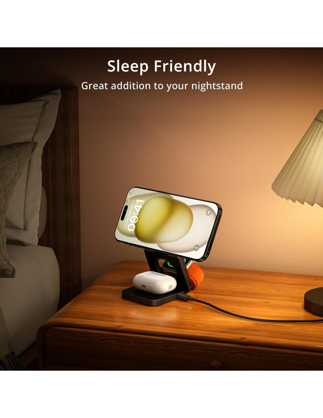- Estación de Carga Magnética Rápida de 15W: Experimenta el poder de la avanzada tecnología de carga inalámbrica con nuestra estación de carga magnética rápida de 15W. Disfruta de una experiencia de carga rápida y confiable para tus dispositivos Apple, ¡sin más preocupaciones por velocidades de carga lentas! Nuestra estación de carga 3 en 1 te permite cargar tu iPhone, AirPods y Apple Watch simultáneamente, todo en un solo lugar conveniente. Di adiós a los cables desordenados y escritorios desordenados, y hola a una solución de carga ordenada y organizada;