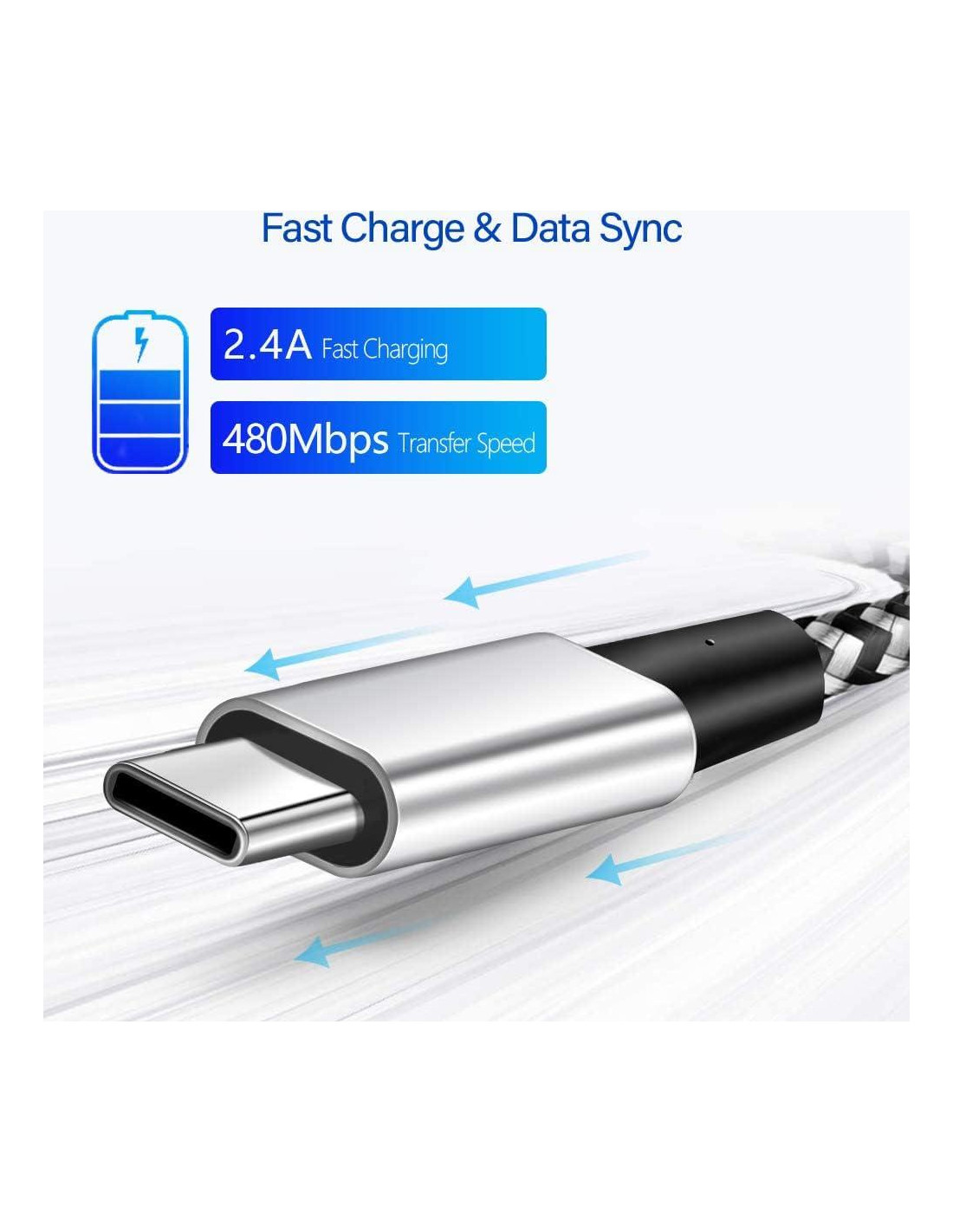 Compatible con Samsung Galaxy S10 / S10 plus / S10e / S10 Lite / S9 / S9 plus / S8 / S8 plus / Note9 / Note8 / Note7 / Note FE Compatible con Samsung Galaxy A60 / A51 / A50 / A42 / A41 / A40 / A32 / A31 / A30 / A21 / A20 / A12 / A11 / A9 / A9s / A8 / A8s / A6s / A02s Compatible con LG V50 / V40 / V30 / V20 / G7 / G6 / G5 / W41 / W31 / W11 Compatible con Samsung Galaxy A90/ A80/ A72/ A71/ A70/ A52/ A Quantum Compatible con Samsung Galaxy Note20/ Note10/Note10+/ S21/ S20/ S20+/ S20 Ultra/S10 Lite/ S10 5G (Requiere un cargador USB-A 18W QC2.0/QC3.0/AFC) Compatible con Samsung Galaxy M/F series: M62/M51/M31s/F62 Compatible con LG V60 ThinQ /G8 ThinQ/ Wing 5G/ Velvet/K92 Compatible con Google Pixel 5/ Pixel 4a/ Pixel 4/ Pixel 3a/ Pixel 3 Compatible con iPad Pro 11 / iPad Pro 12.9 (Requiere un cable USB-C a USB-C) Compatible con Nintendo Switch Compatible con Huawei Mate 9 / P10 Carga rápida cable USB A a USB C de 10 pies con 3A de potencia, 480Mbps de sincronización, diseño trenzado resistente y carga segura-diseñado para durar con amplia compatibilidad para la mayoría de los dispositivos USB-C. Cable USB C a Lightning