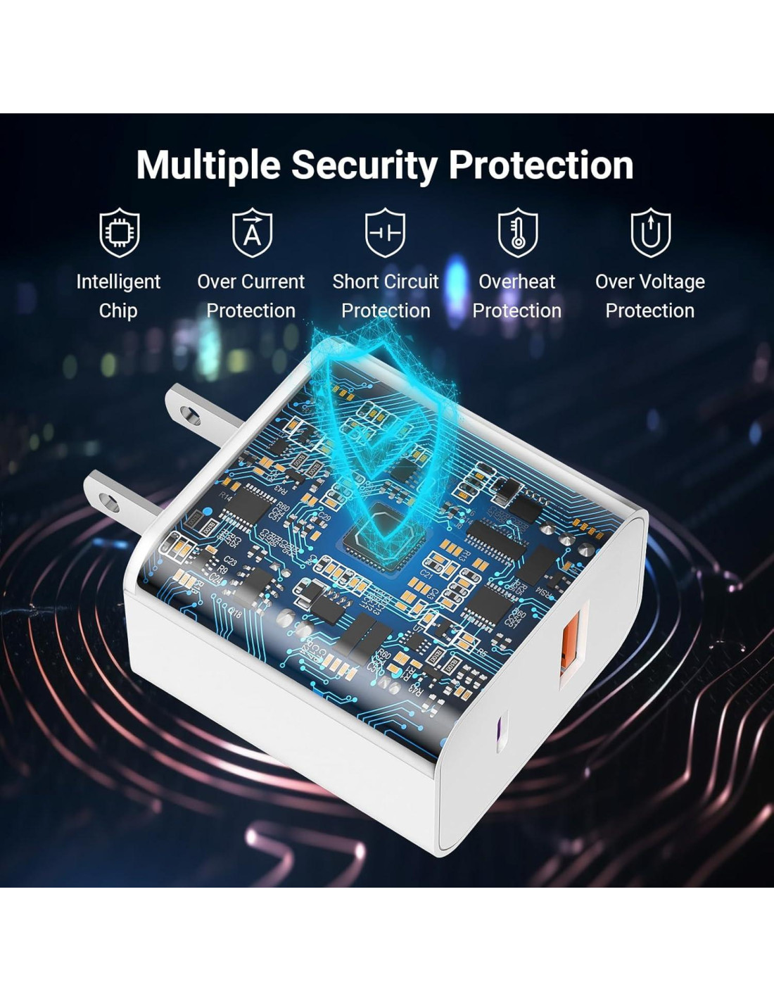 - [Cargador Rápido de Seguridad Superior] El cargador de iPhone de 20W tiene un sistema de seguridad multipotente que asegura una protección completa para tus dispositivos lightning. El cargador de pared certificado por UL tiene protección contra sobrevoltaje, presenta un voltaje estable. El cable lightning tiene un chip inteligente incorporado para coincidir automáticamente con la corriente requerida por los dispositivos.