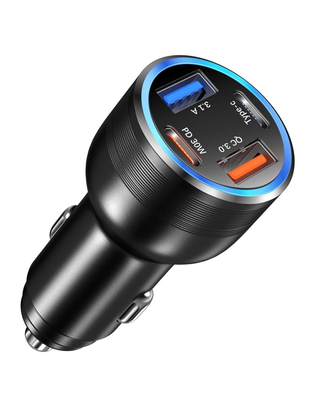- [Cargador de coche de 12V a USB C y USB A] Cargador de coche 4 en 1 diseñado con 2 conectores USB-C y 2 conectores USB-A, te permite cargar múltiples dispositivos al mismo tiempo. El puerto USB-C PD de 30W puede cargar rápidamente el dispositivo que necesita alta velocidad, como el iPhone 15 Pro Max, iPad, Galaxy S24 Ultra e incluso MacBook. El puerto USB-A QC puede cargar rápidamente la mayoría de los dispositivos Android del 0% al 80% en 35 minutos.