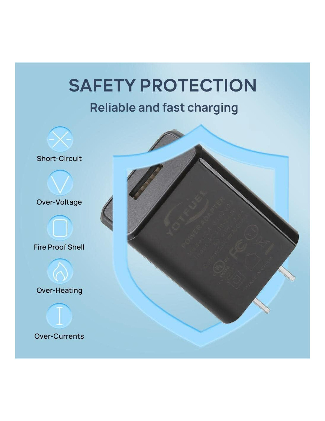 - Protección de Seguridad - El Adaptador de Cargador tiene un sistema de protección contra sobrecorrientes, sobrecalentamiento, cortocircuito y sobretensión.