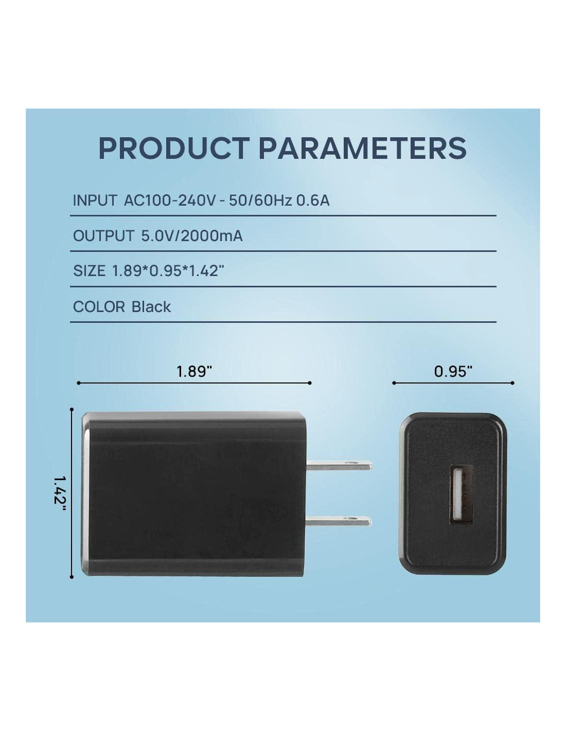 - Rendimiento Premium - ENTRADA: AC100-240V - 50/60Hz 0.6A; SALIDA: 5.0V/2000mA. Velocidad de carga rápida para tus dispositivos y ahorra tiempo.