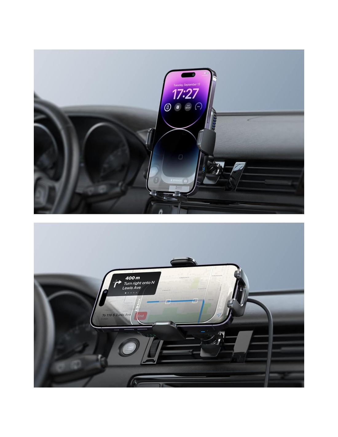 - [MONTAJE ULTRA SEGURO] Viene con el Clip de Ventilación MEJORADO, que te permite fijarlo firmemente en las aspas de ventilación, asegurando que tu teléfono esté seguro y estable incluso cuando golpeas un bache en la carretera.