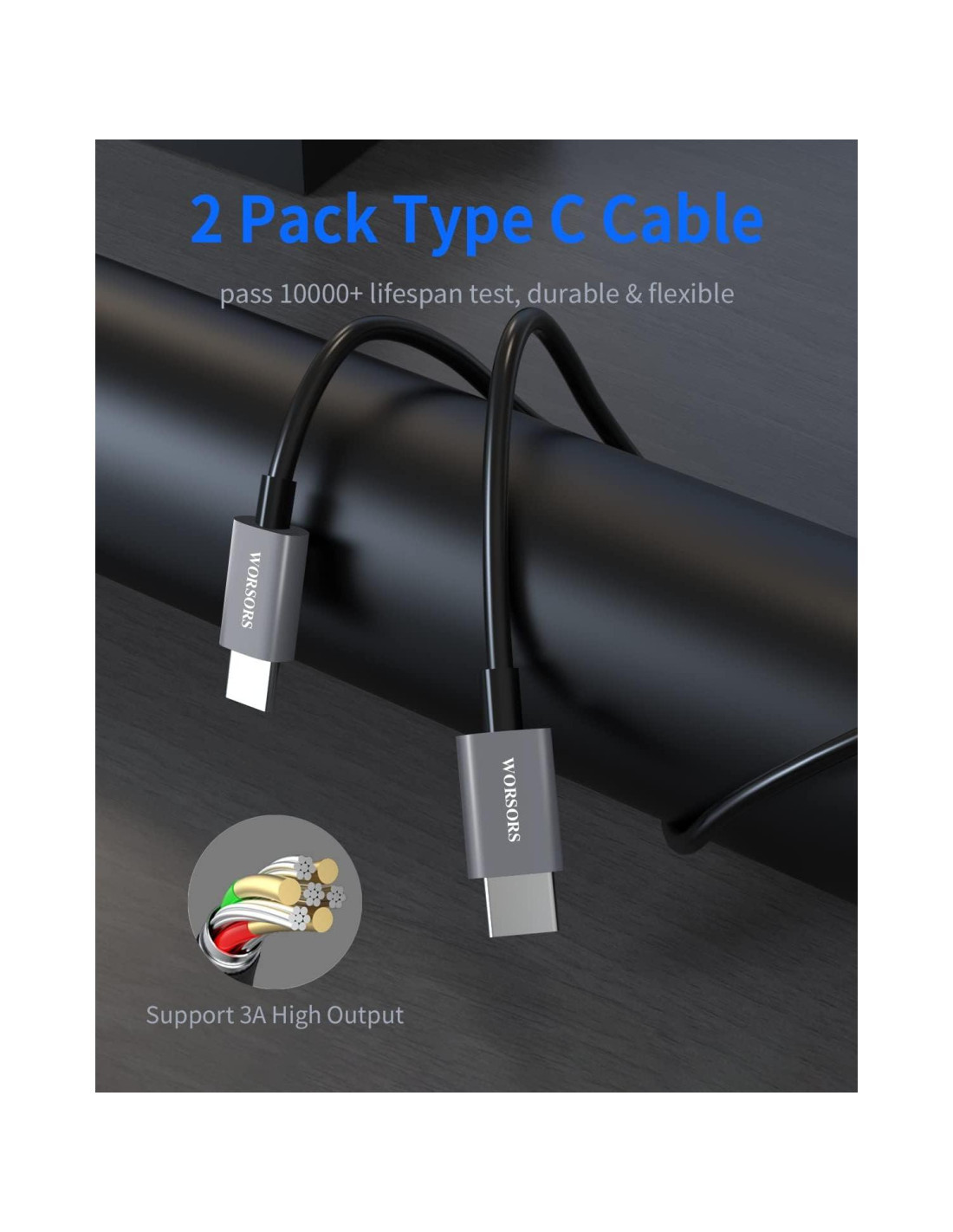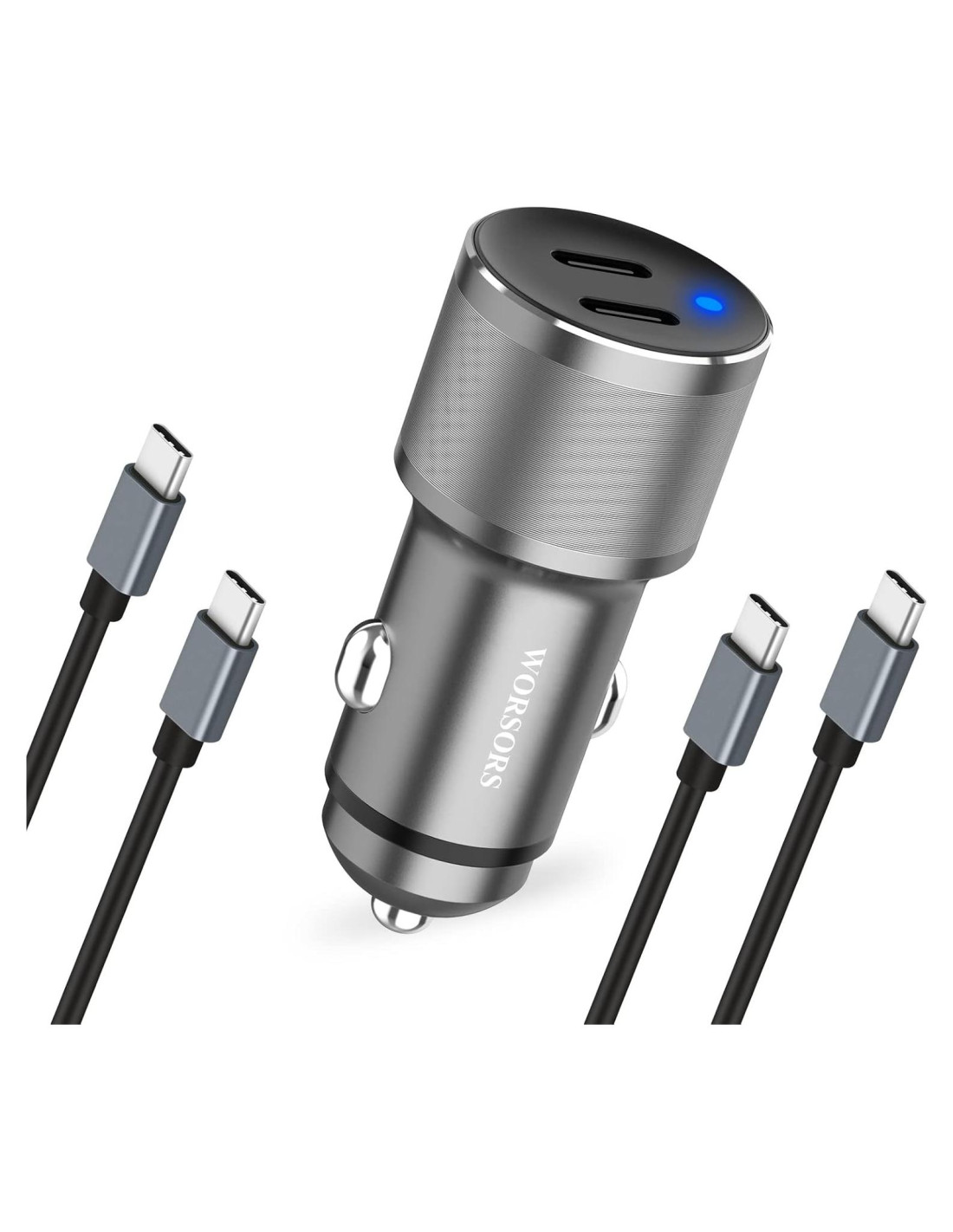 - Qué hay en la caja: Adaptador de cargador de coche USB C 30W WORSORS, 2 x cable USB C a C de 1m