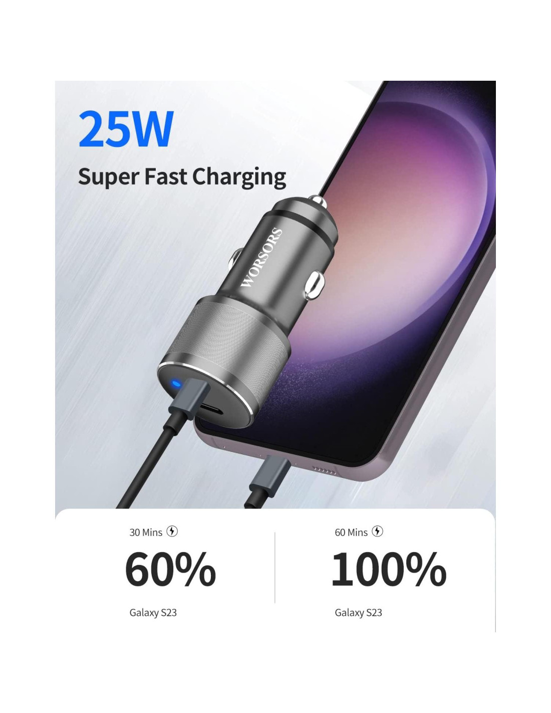 - Lo que obtienes: adaptador de cargador de coche USB C dual 30W WORSORS X 1, cable USB C a C de 1m X 2, cuidado WORSORS X 18 meses. Por favor, envíanos un correo electrónico primero si tienes algún problema o inquietud. Nos aseguraremos de responder en 24 horas