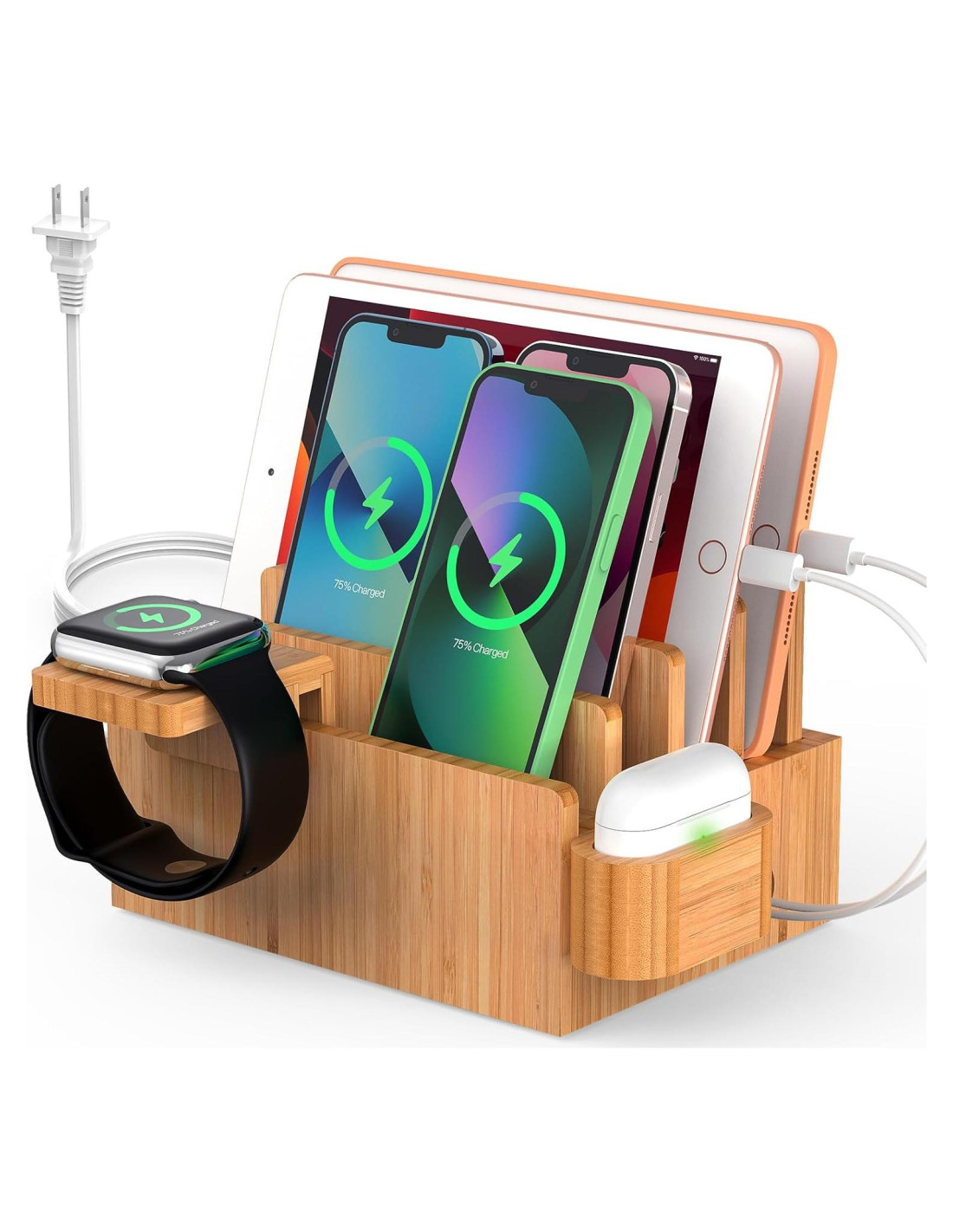 - Organizador para Múltiples Dispositivos: la estación de carga de bambú Pezin & Hulin es más grande que las demás, y es simple y práctica con grandes capacidades de almacenamiento y organización. El soporte puede sostener hasta 8 dispositivos, manteniendo tus dispositivos en orden y ayudando a limpiar la carga de dispositivos apilados