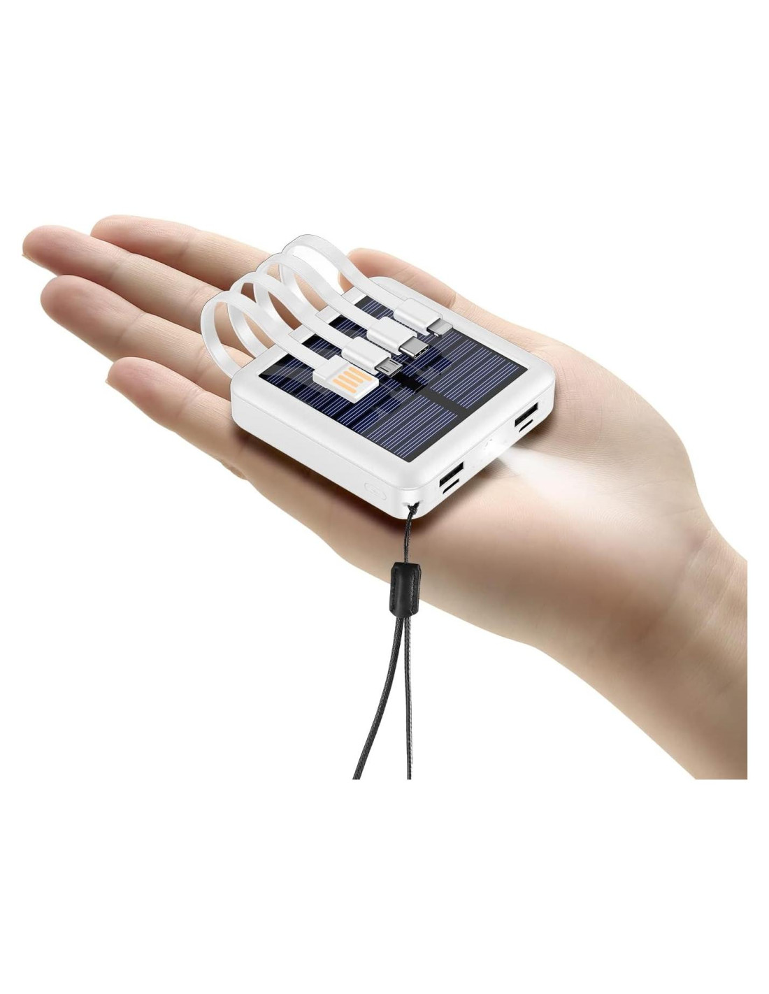 - [Super Mini] Uno de los bancos de energía solar de 12000mAh más pequeños y ligeros. solo 3 x 3.2 x 0.8 pulgadas (7,62 x 8,13 x 2,03 cm), es fácil de poner en tu bolsillo o bolsa, el diseño con cordón es fácil de llevar.