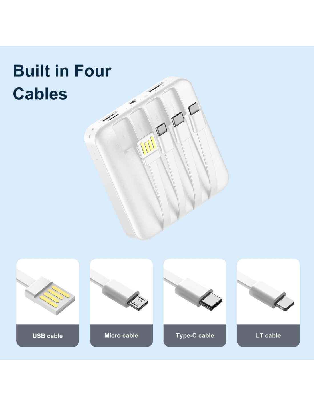 1. Viene con cable: Cargador portátil verdaderamente inalámbrico con 3 líneas de salida y 1 línea de entrada.