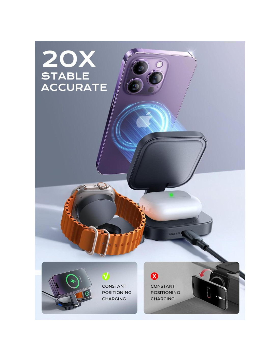 - para iPhone 15 14 13 Pro/Max puede ser soportado triangularmente incluso con la posición de cámara ampliada! Se convierte en una mesita de noche con una estación de carga Carga Rápida 3 Modos Carga Simultáneamente, simplifica la complejidad para proporcionar energía para elegir un Pad, una estación o un modelo de cargador plegable? Este es verdaderamente la mejor opción 3-en-1, Plegado 180 para Usar y Rotado 360 para la estación de carga inalámbrica Apple watch Magsafe para iPhone