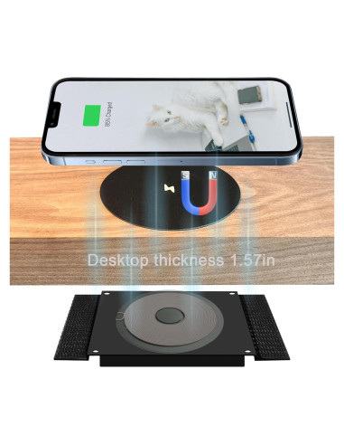 - [Máx 1.57 pulgadas (40MM) de distancia de carga] Este cargador inalámbrico invisible debajo de la mesa tiene una distancia de carga de 8-40MM (0.31-1.57 pulgadas) para carga en escritorio. Si tu distancia de carga no está dentro de este rango, ten en cuenta que si es demasiado delgada, puedes dañar tu dispositivo. Adecuado para instalación debajo de mesas con tapas gruesas. Adecuado para no metales como mármol, cuarzo, madera, vidrio, etc.