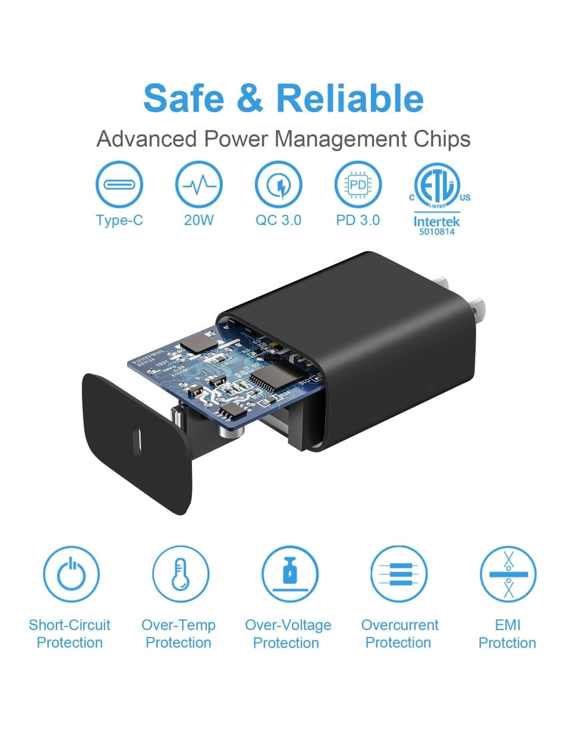 - [Cargador iPhone 16] Cargador de pared PD USB Tipo C de 20W, adaptador PD 3.0 Carga Rápida, puerto USB-C proporciona una potencia de salida máxima de 20W, 3 veces más rápido que un cargador USB estándar. Cargando hasta un 50% en solo 30 minutos para la carga de iPad Pro, a 3A máximo, le ayuda a trabajar de manera eficiente.