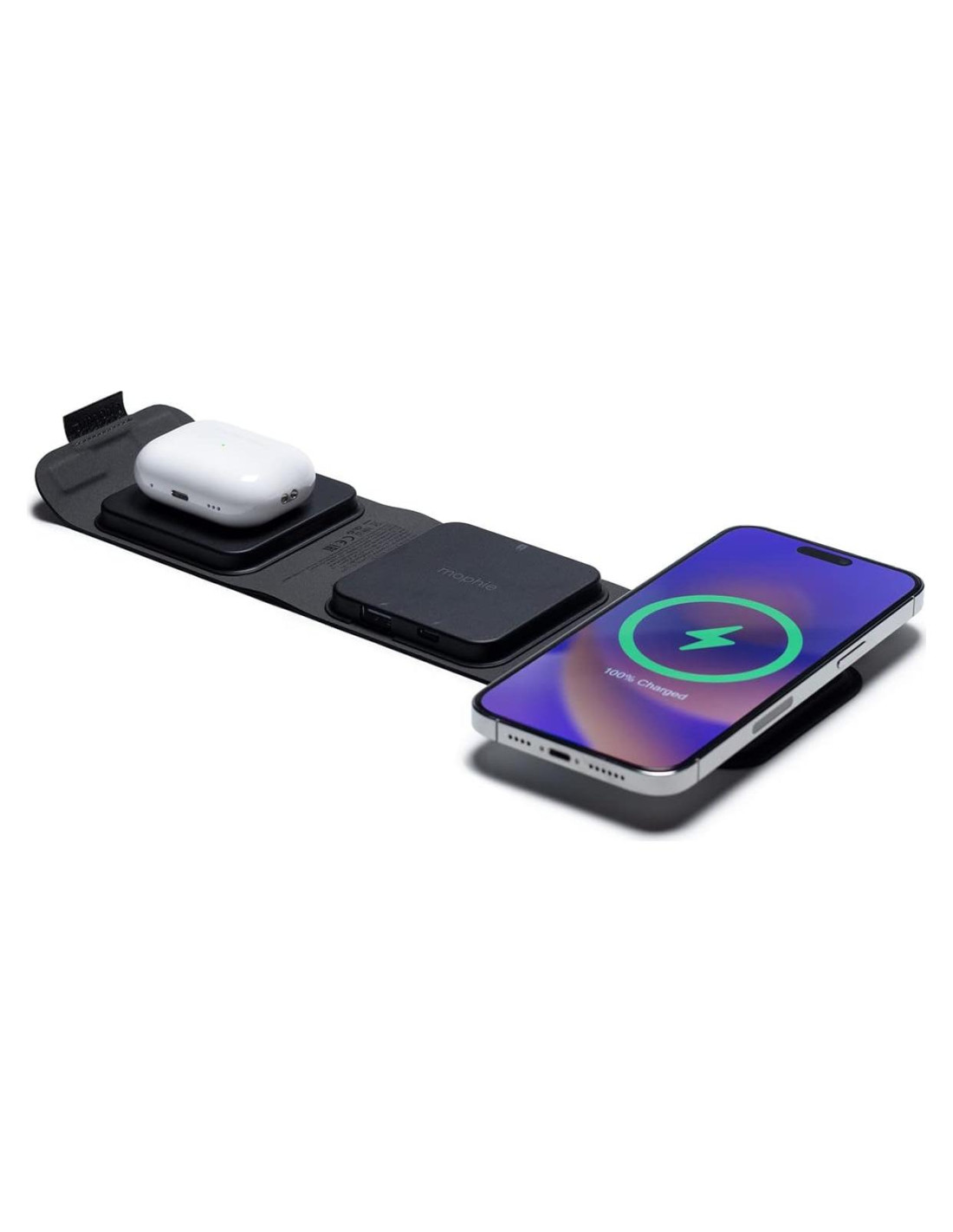 - Salida de Potencia Versátil: Ofrece hasta 7.5W para iOS y 15W para dispositivos Android, con un lugar de carga dedicado de 5W para AirPods.