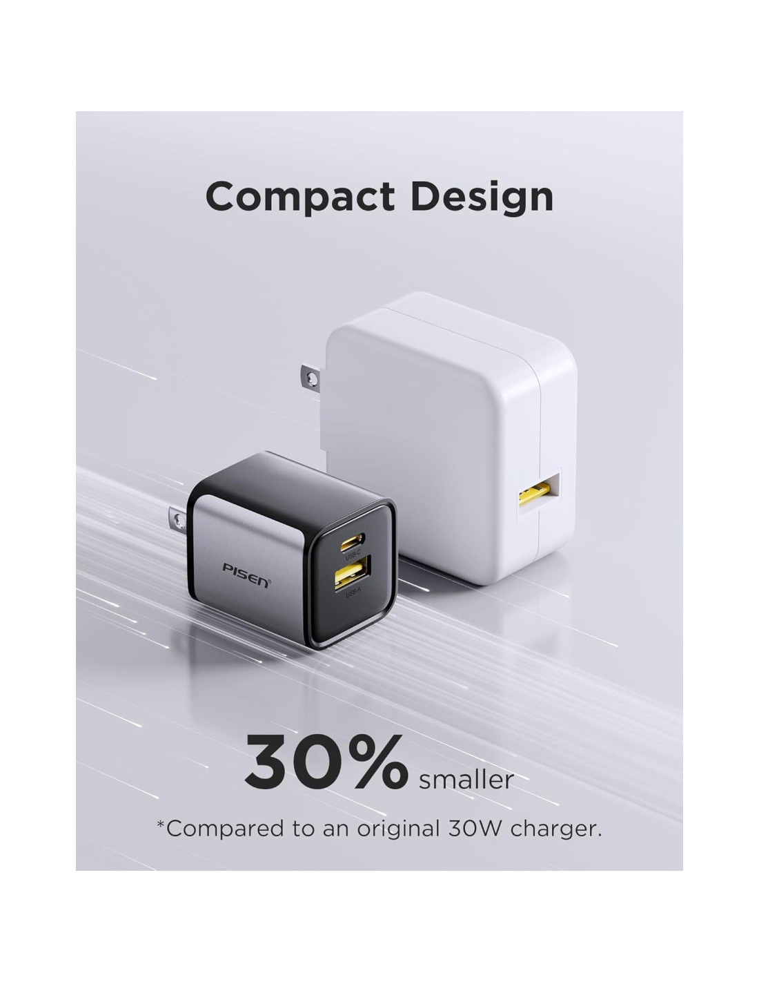- Qué incluye: Cargador USB C PISEN 30W, manual de instrucciones (cable no incluido)
