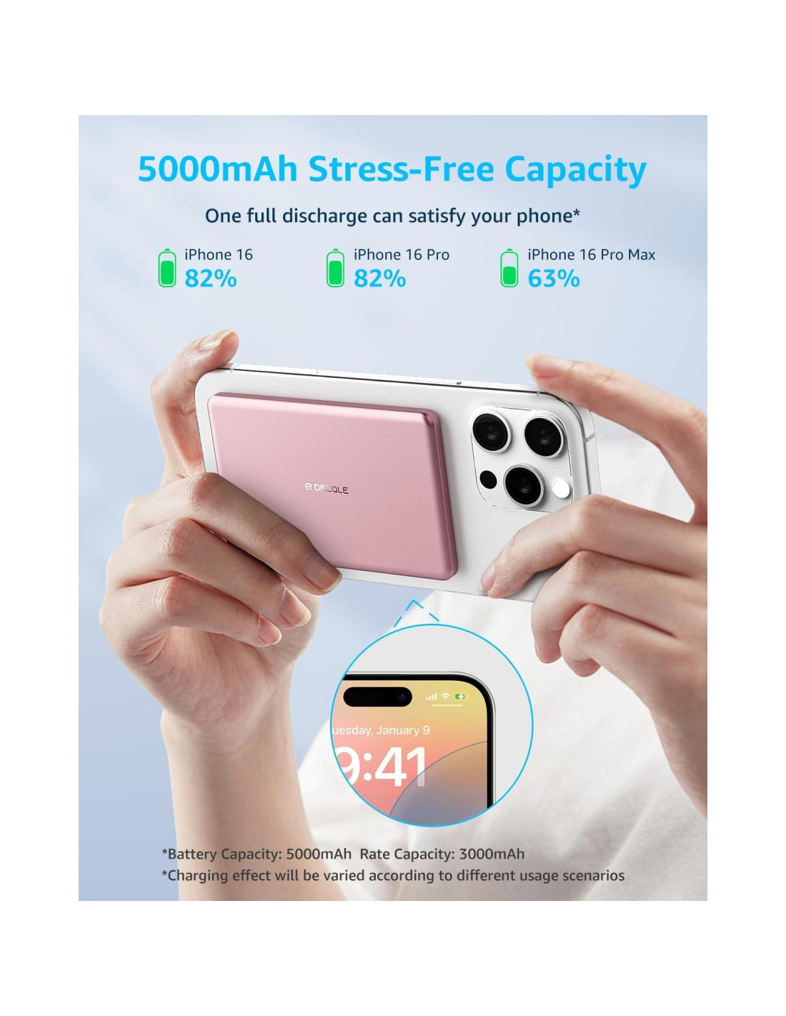 - [Alta densidad y duradera] La batería portátil magnética "Air" está equipada con una celda de batería de iones de litio de alta densidad, que tiene una capacidad de 5000mAh en un diseño ultra delgado. Con una durabilidad excepcional, se puede cargar más de 500 veces sin un envejecimiento significativo de la batería.