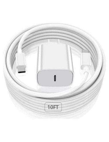 - [Cable USB C a C Extra Largo de 10FT] : Con el chip inteligente y hecho de material TPE, este cable de carga para iPad puede cargar el iPad Pro de 12.9 pulgadas y el nuevo iPhone 15 con una velocidad de carga de hasta 3A. Diseño reversible amigable que soporta sincronización de datos a 480Mbps entre tu teléfono y laptop. El cable extra largo de 10FT puede darte más espacio para moverte mientras cargas.