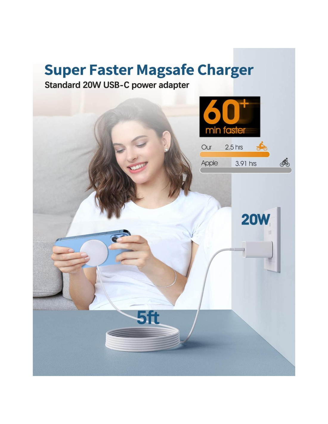 - Carga Rápida y Segura Se incluye un cable USB-C de 1.5m y no se incluye un adaptador de carga de 20W en el paquete, brindándote una experiencia de carga rápida y segura. Según nuestra prueba, solo toma de 2.5 a 3 horas cargar completamente tu iPhone del 0 al 100%. El chip inteligente incorporado protege tu teléfono de sobrecalentamiento, sobrecarga y cortocircuito, brindando gran tranquilidad al usar la estación de carga inalámbrica magnética.