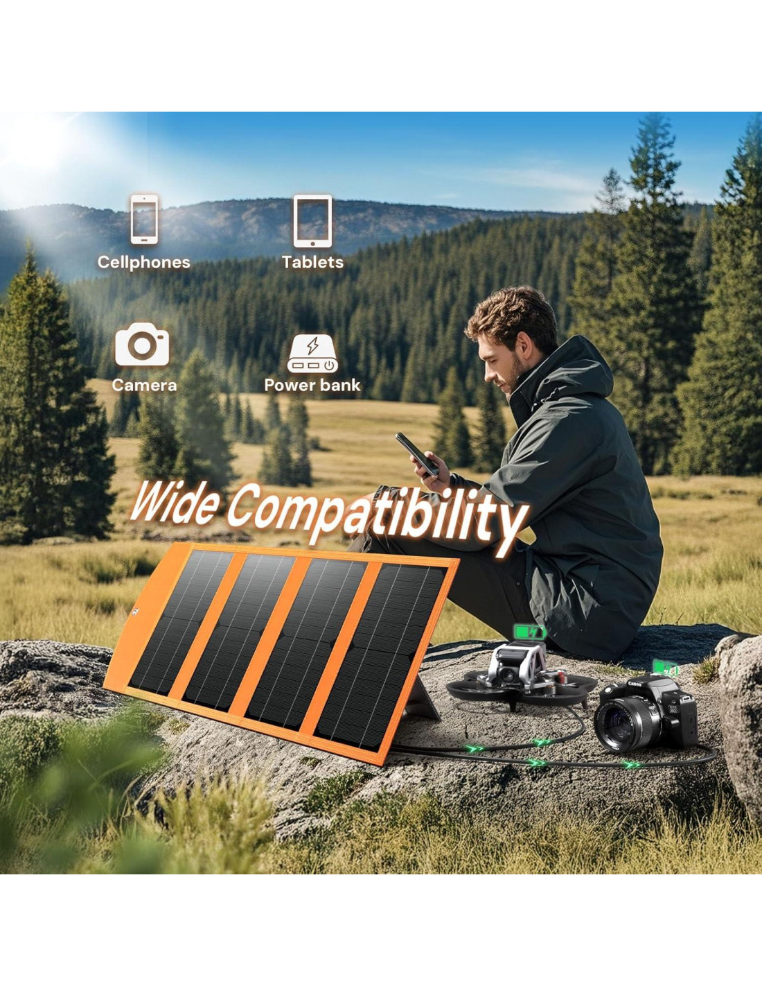 - [Panel Solar Portátil para Camping] Hecho para campamentos móviles y aventuras fuera de la red, el panel solar plegable de 30W es perfecto para viajes más largos cuando necesitas más energía sin sacrificar la portabilidad. Con un tamaño pequeño de 11.6*6.5*1.77 pulgadas (cuando está plegado) y un diseño ligero de 2.4lb (1.09kg) que se puede meter fácilmente en tu mochila, ofreciendo portabilidad y simplicidad. También es un elemento imprescindible para guardar en un kit de emergencia