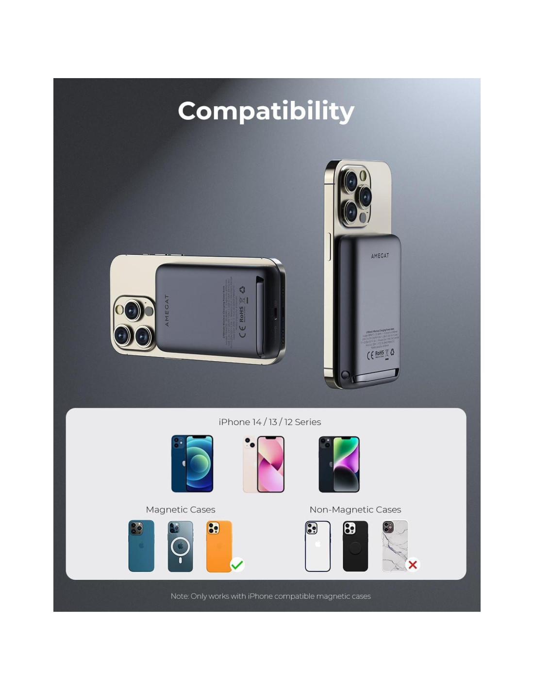 - Soporte Ajustable Integrado: El cargador portátil inalámbrico AMEGAT cuenta con un soporte ajustable integrado para ver, ideal para ver videos, videollamadas o trabajar mientras se carga