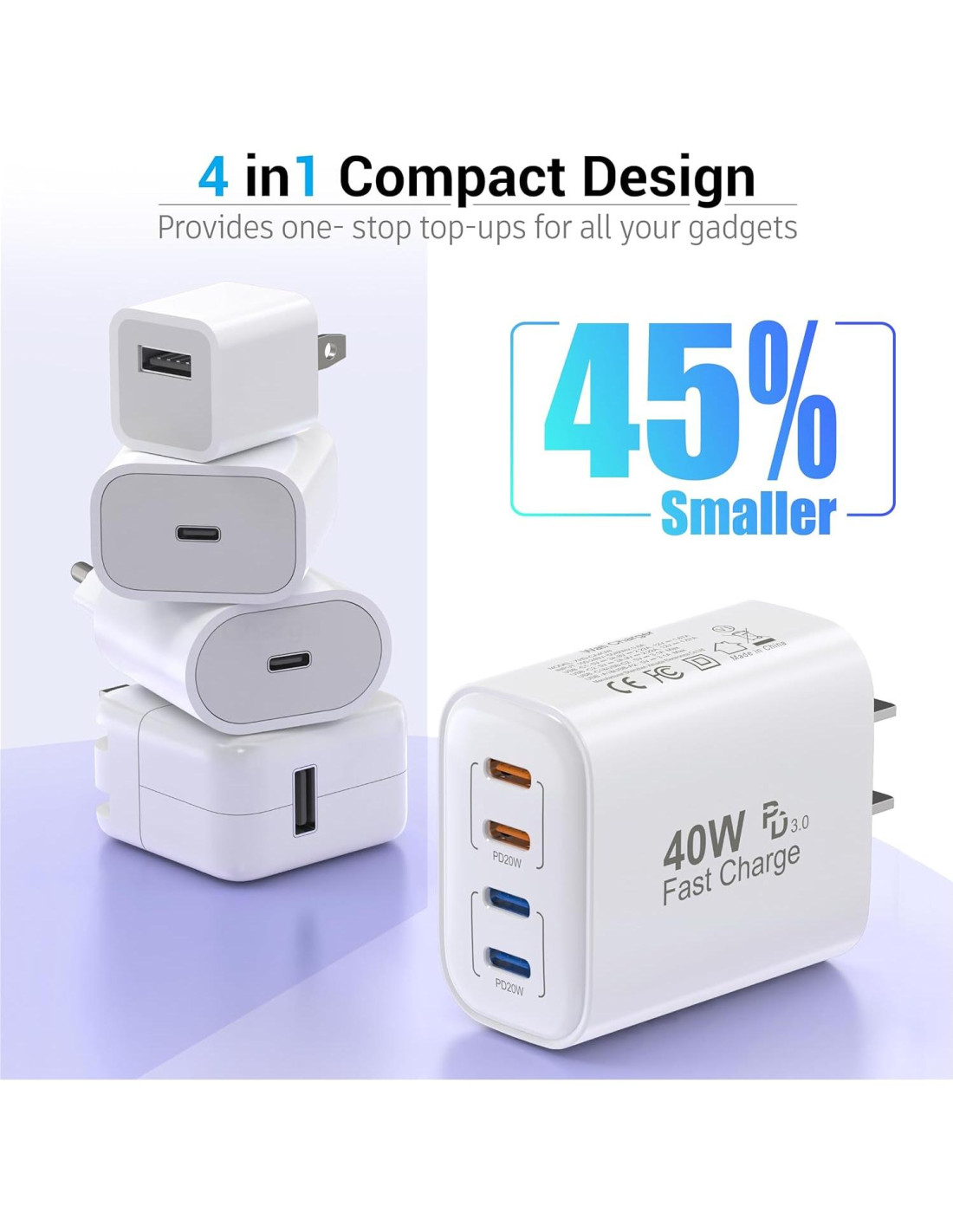 - [ 40W Salida Total ] : Proporciona un total de 40 vatios, asegurando una carga rápida para múltiples dispositivos simultáneamente. Incluye 4 puertos USB C para acomodar una variedad de dispositivos como smartphones, tabletas y otros dispositivos USB C.