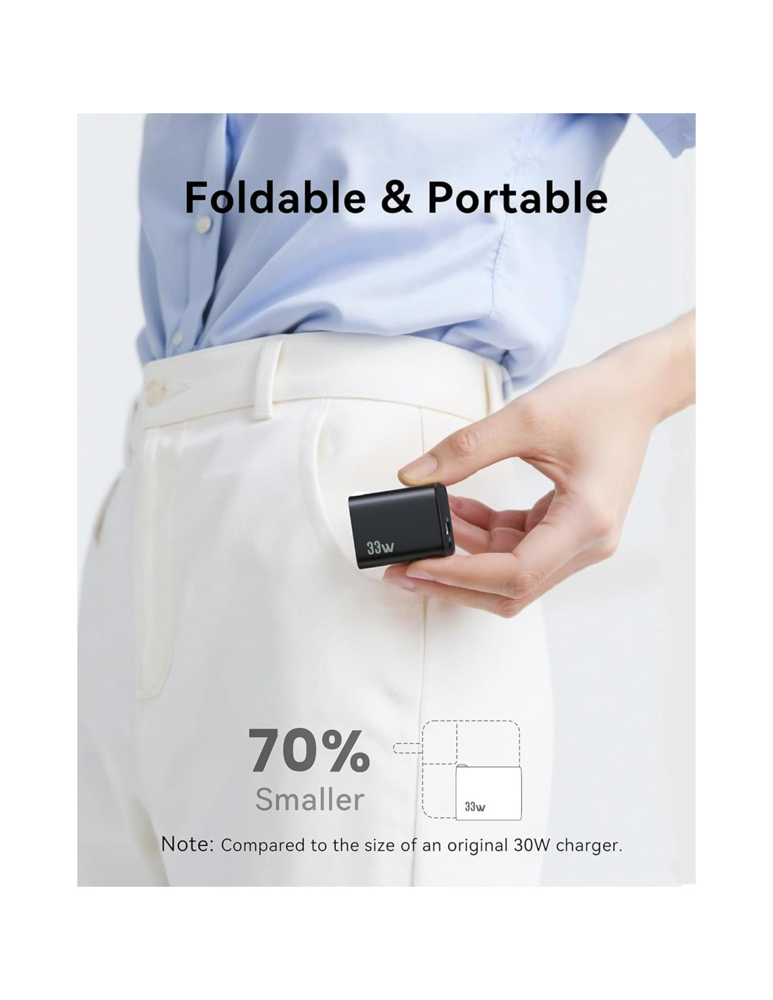 - Compacto y portátil: Con un peso de solo 58.5 gramos (2.05 onzas), este cargador rápido USB C presenta un diseño ultra compacto y liviano que es un 70% más pequeño que el cargador original de 30W, la carcasa de ABS duradera previene rasguños y tiene patas plegables