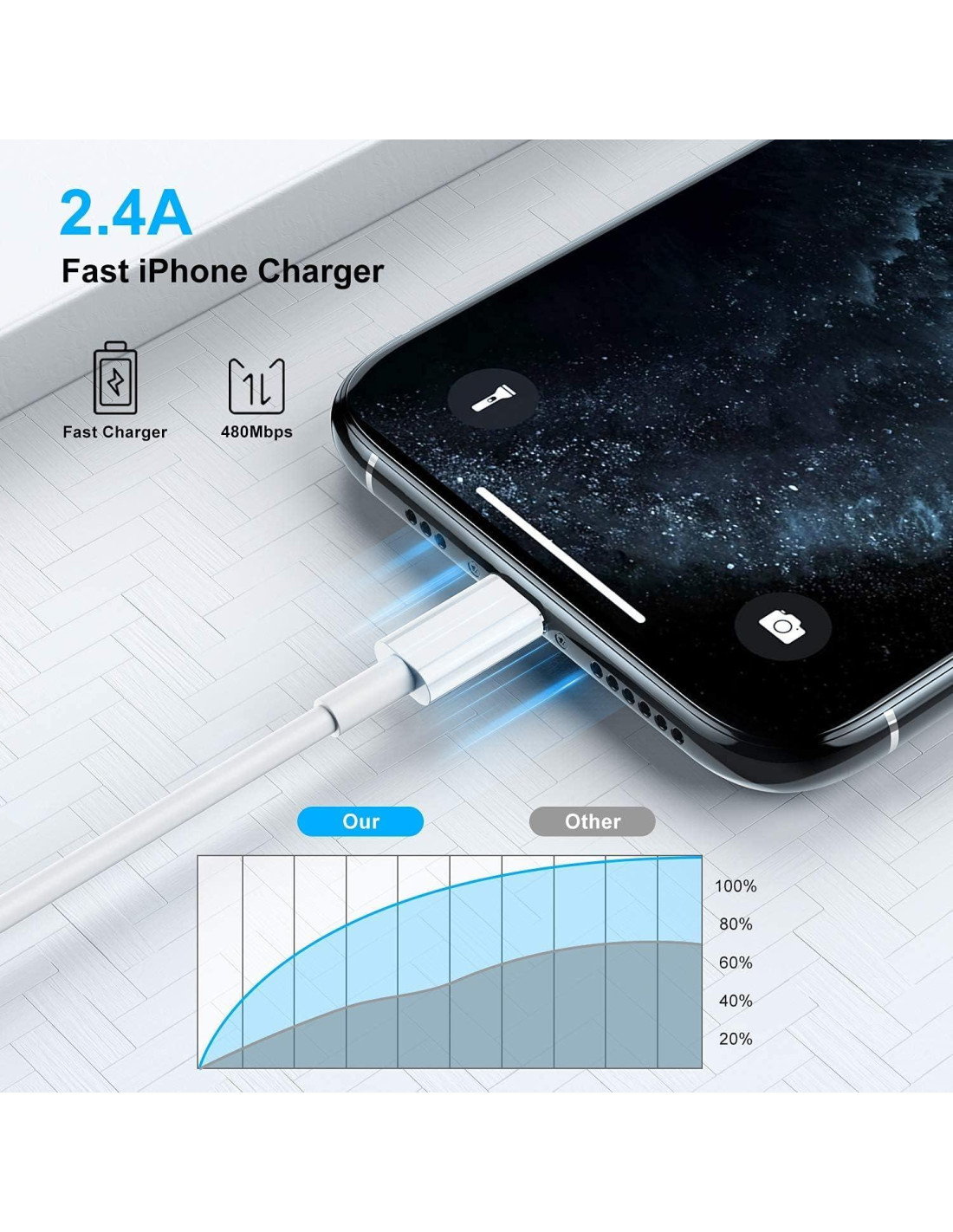 - Carga segura y rápida: El chip certificado por Apple MFi asegura que el cable pueda proporcionar una corriente segura y efectiva para el dispositivo. El cable de carga para iPhone está compuesto de hilos de cobre de alta calidad, que pueden aceptar 2.4A de corriente para carga rápida y 480 Mbps/s de transmisión de datos rápida.
