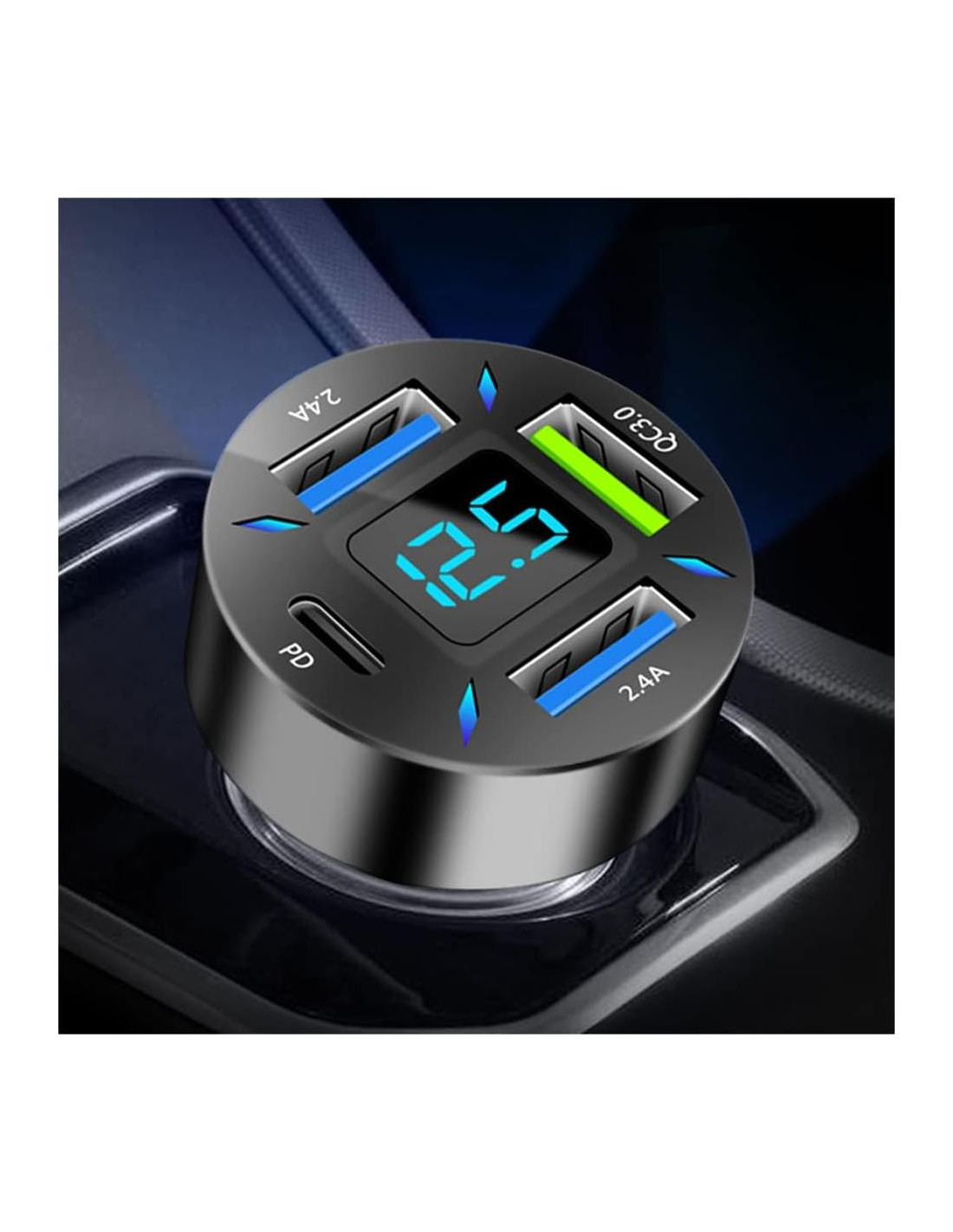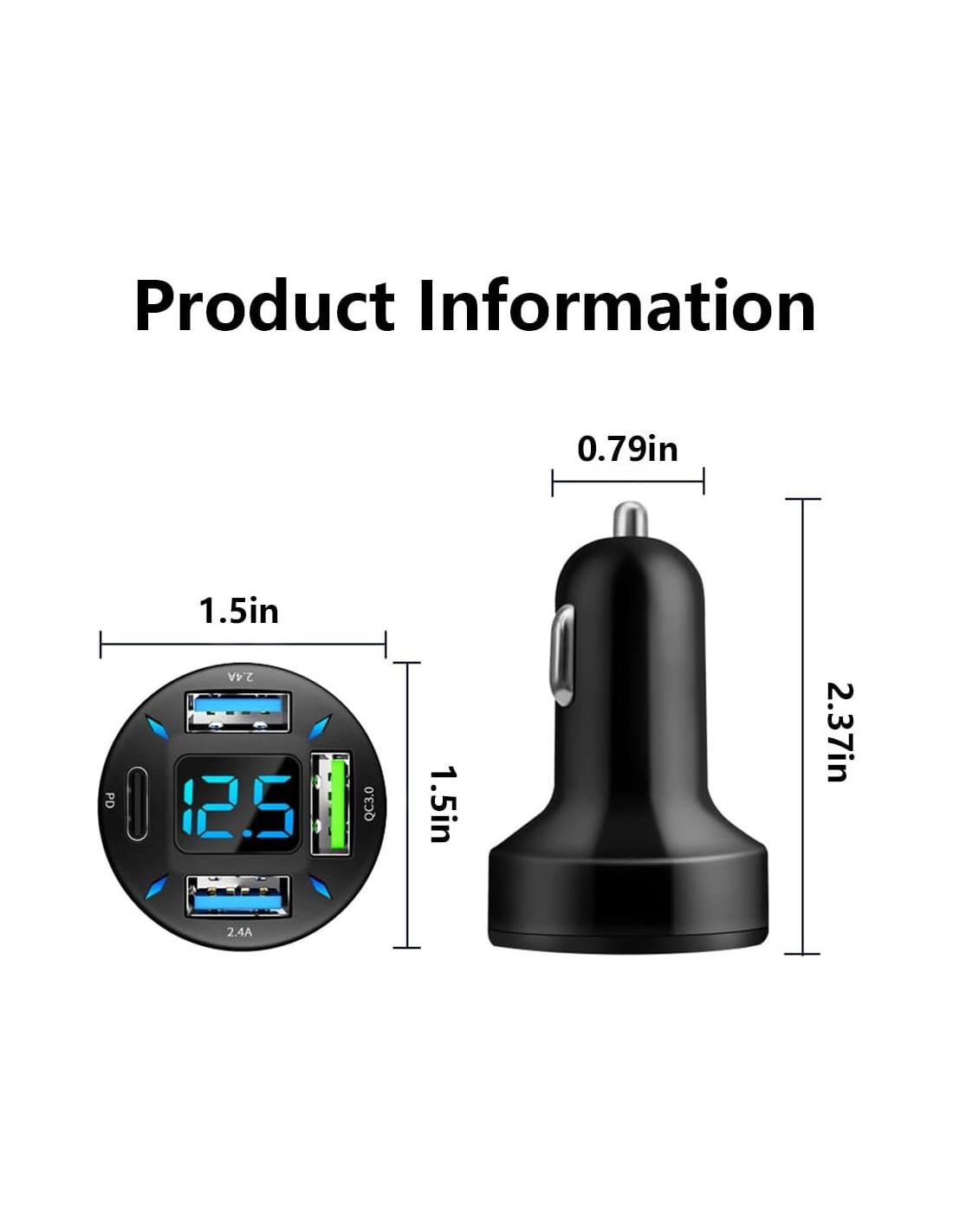 Función: suministro de energía de cuatro puertos, carga rápida qc3.0, carga rápida PD, división de corriente inteligente, monitoreo de voltaje, chip inteligente, instalación sólida, universal para varios automóviles, múltiples protecciones de seguridad, con diseño de 4 pequeños orificios transpirables en la superficie, enfriamiento a temperatura constante.